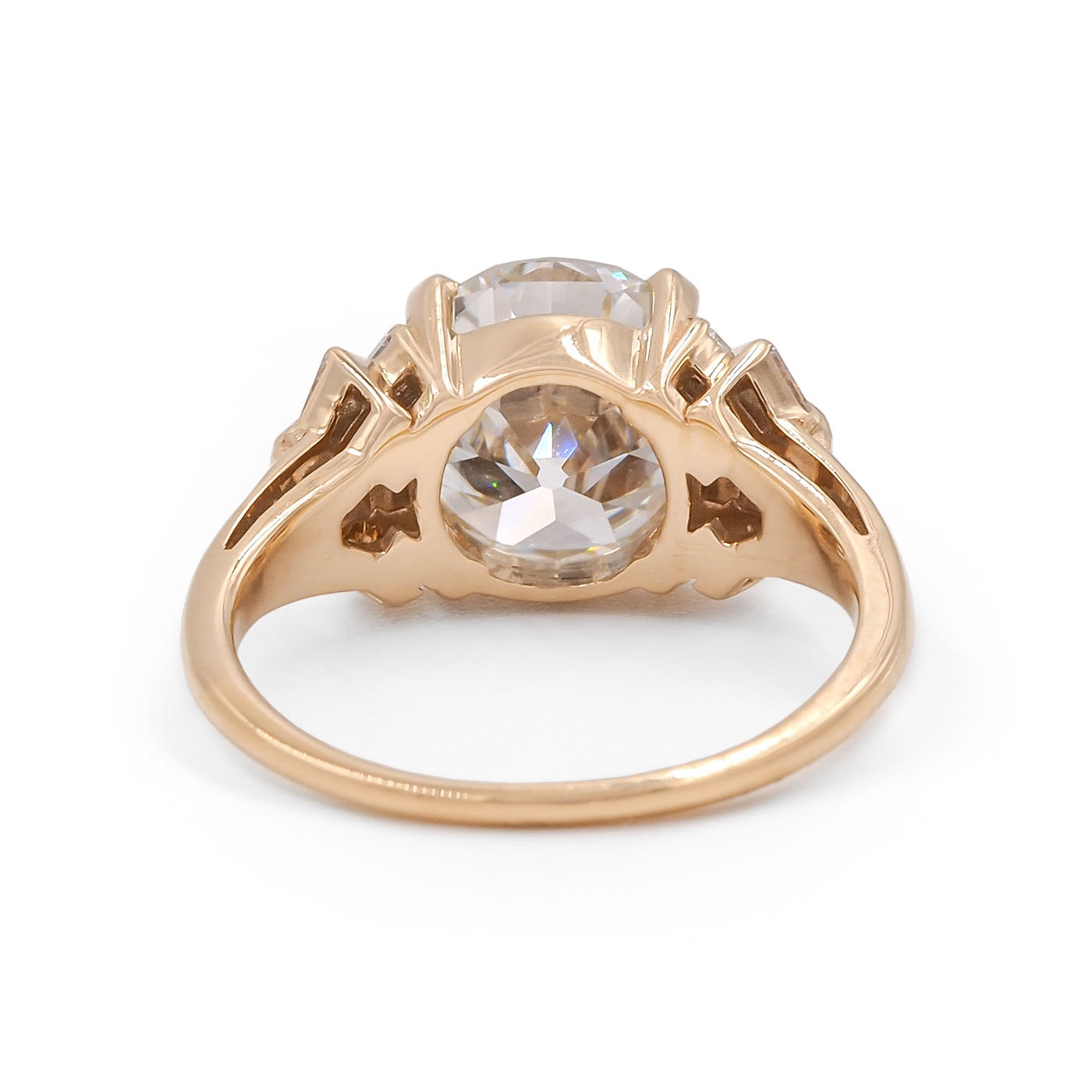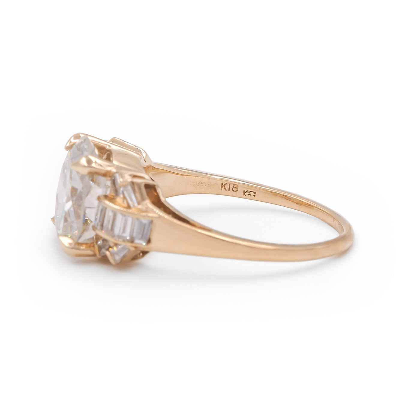 American 3.02 Ct. Transitional Cut Diamond Engagement Ring from Bespoke by Platt, composed of 18k yellow gold. Featuring a 3.02 carat Transitional Cut diamond that is GIA certified to have K color/I1 clarity. The setting also features 8 Baguette Cut diamonds and 8 Tapered Baguette Cut diamonds that accent the shoulders. American origin. Contemporary.