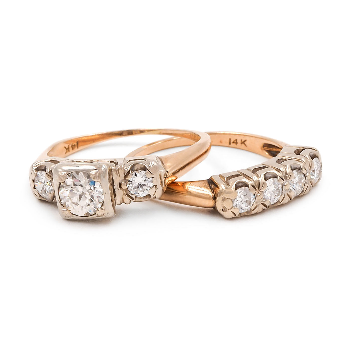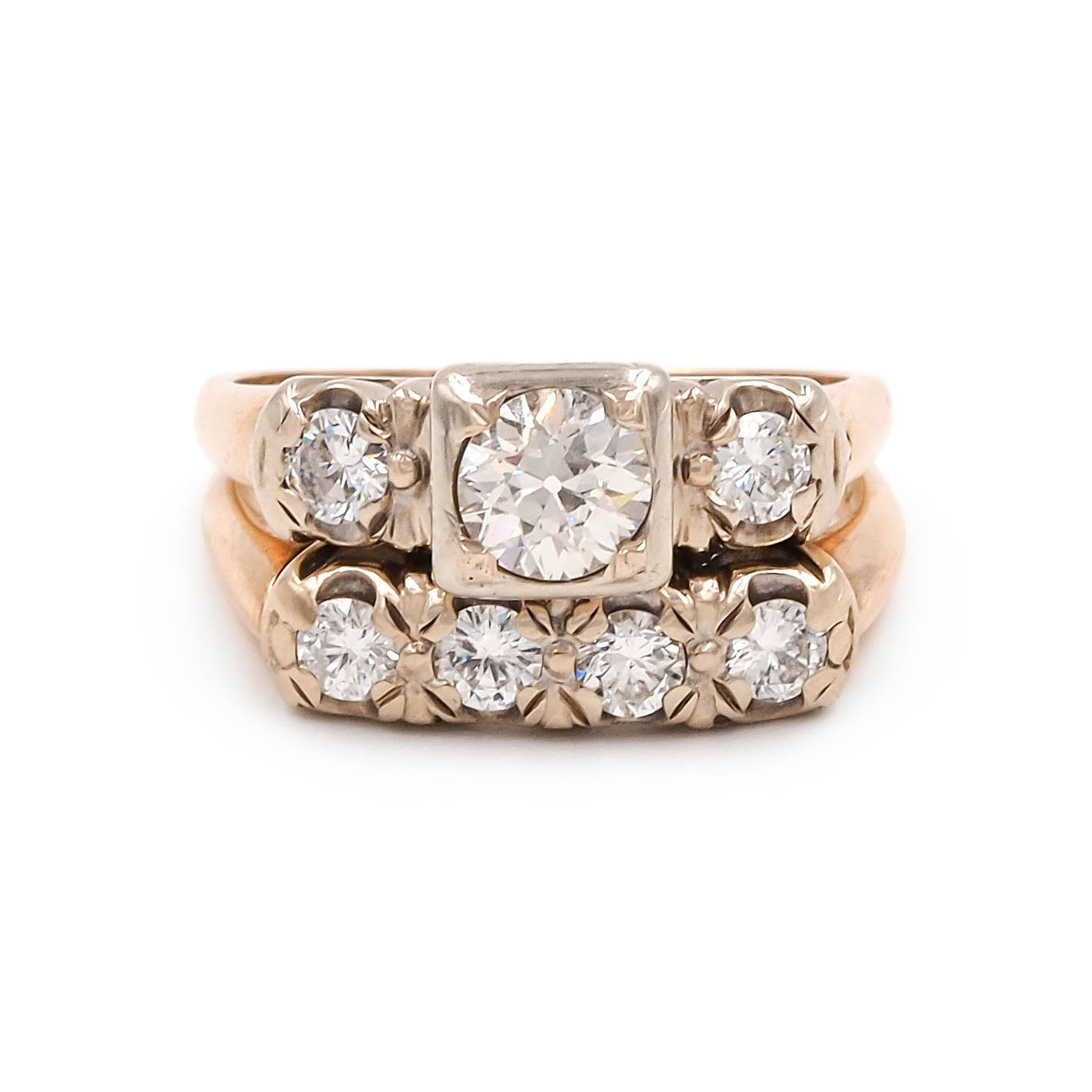 Retro 0.59 Ct. Old European Cut Diamond Engagement Ring & Wedding Band