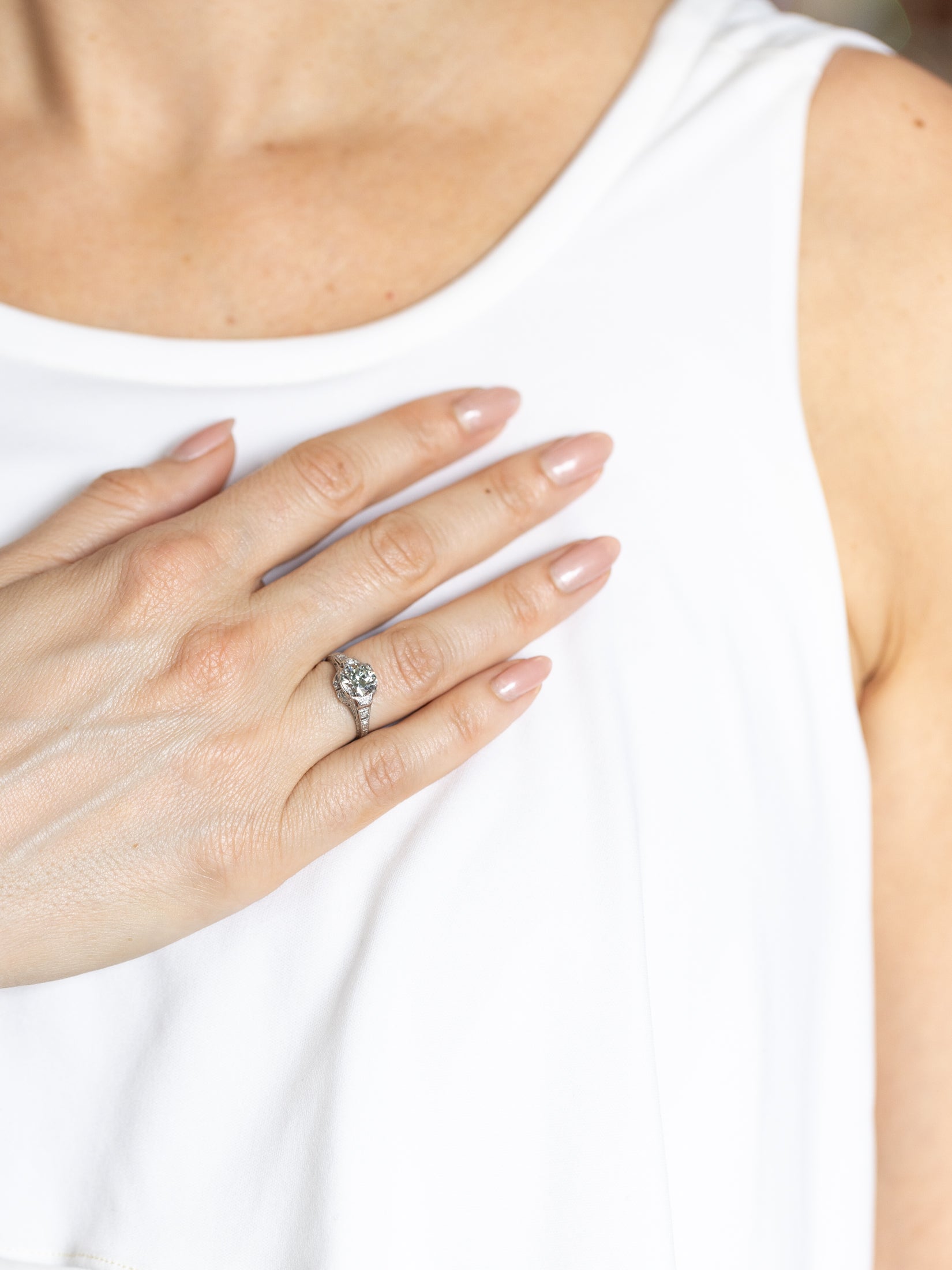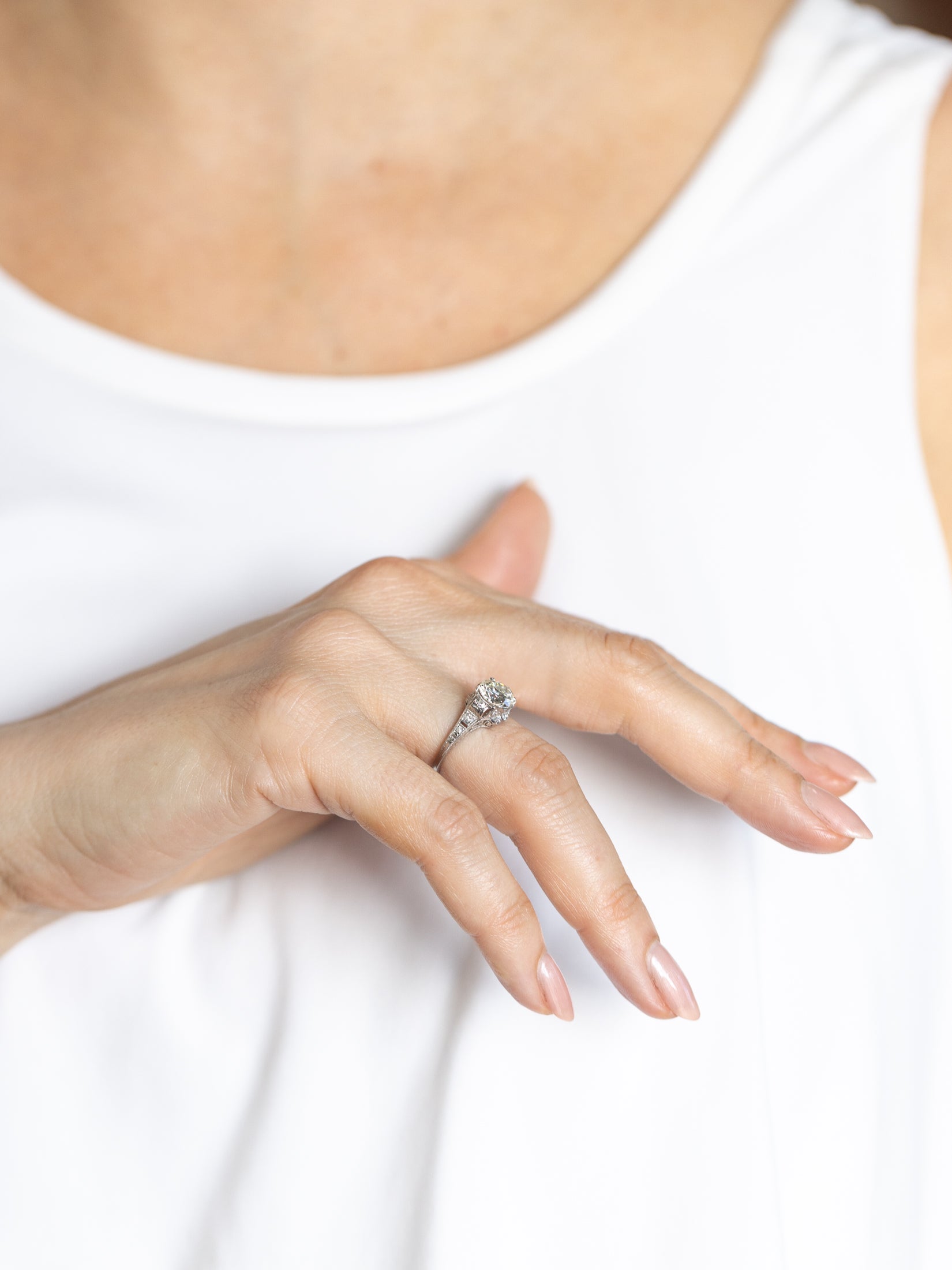 Art Deco 1.61 Carat Transitional Cut Diamond Engagement Ring