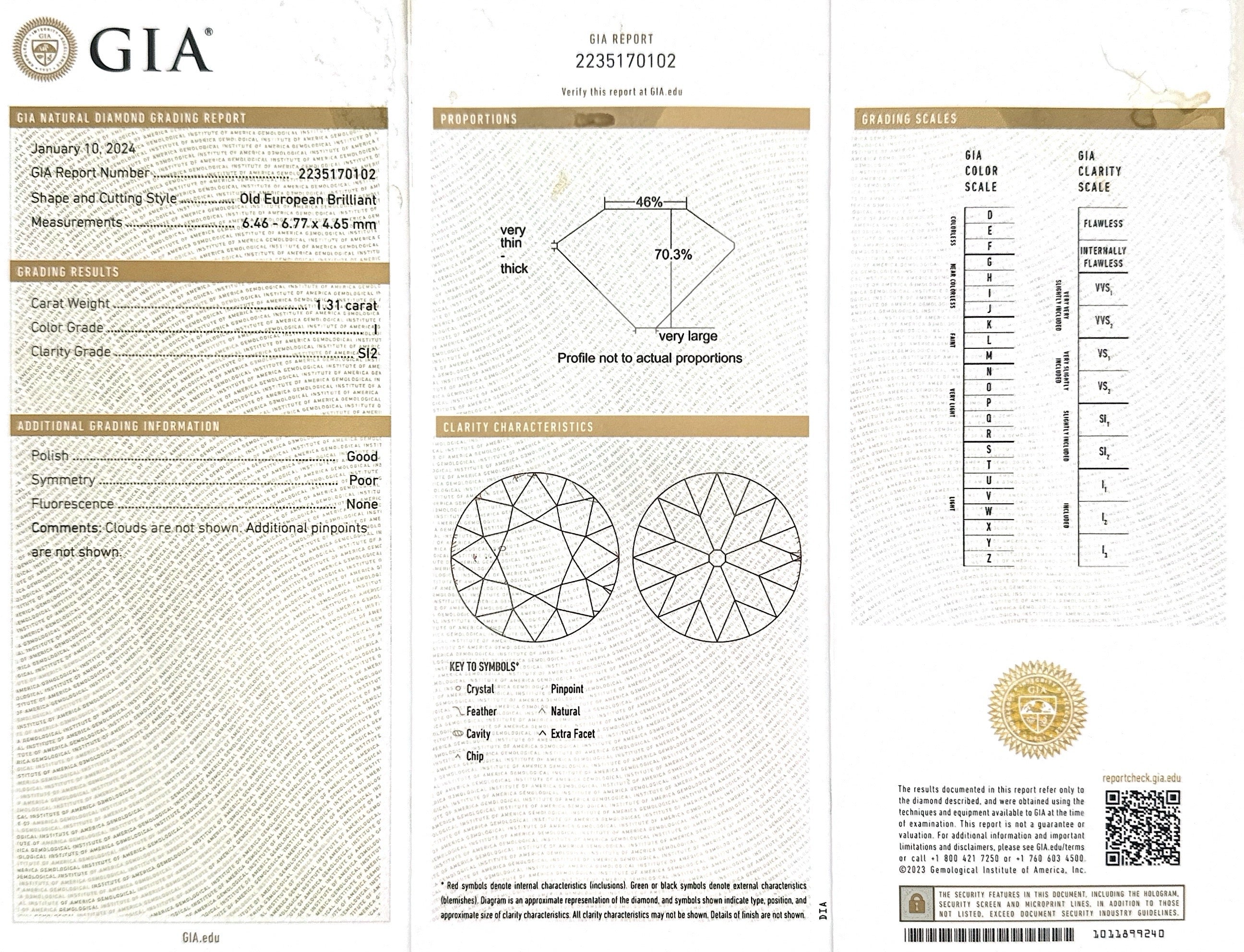 Stones: 1.31 Ct. Old European Cut Diamond; 1.05 Ctw. Old European Cut Diamonds