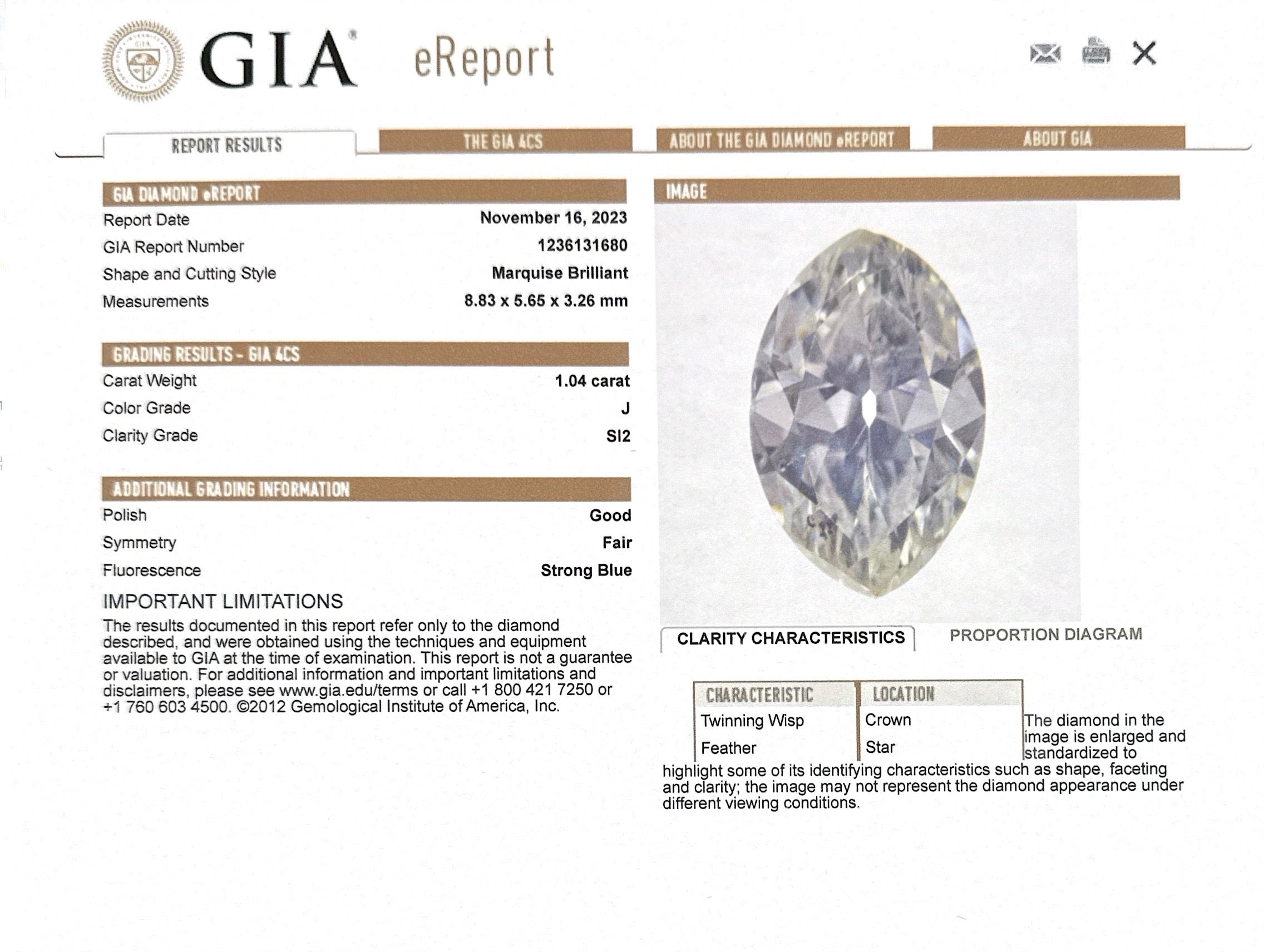 Stones: 1.04 Ct. Marquise Cut Diamond