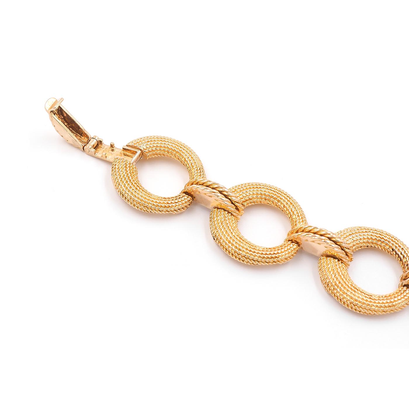 Mid-Century Circular Rope-Motif Gold Bracelet