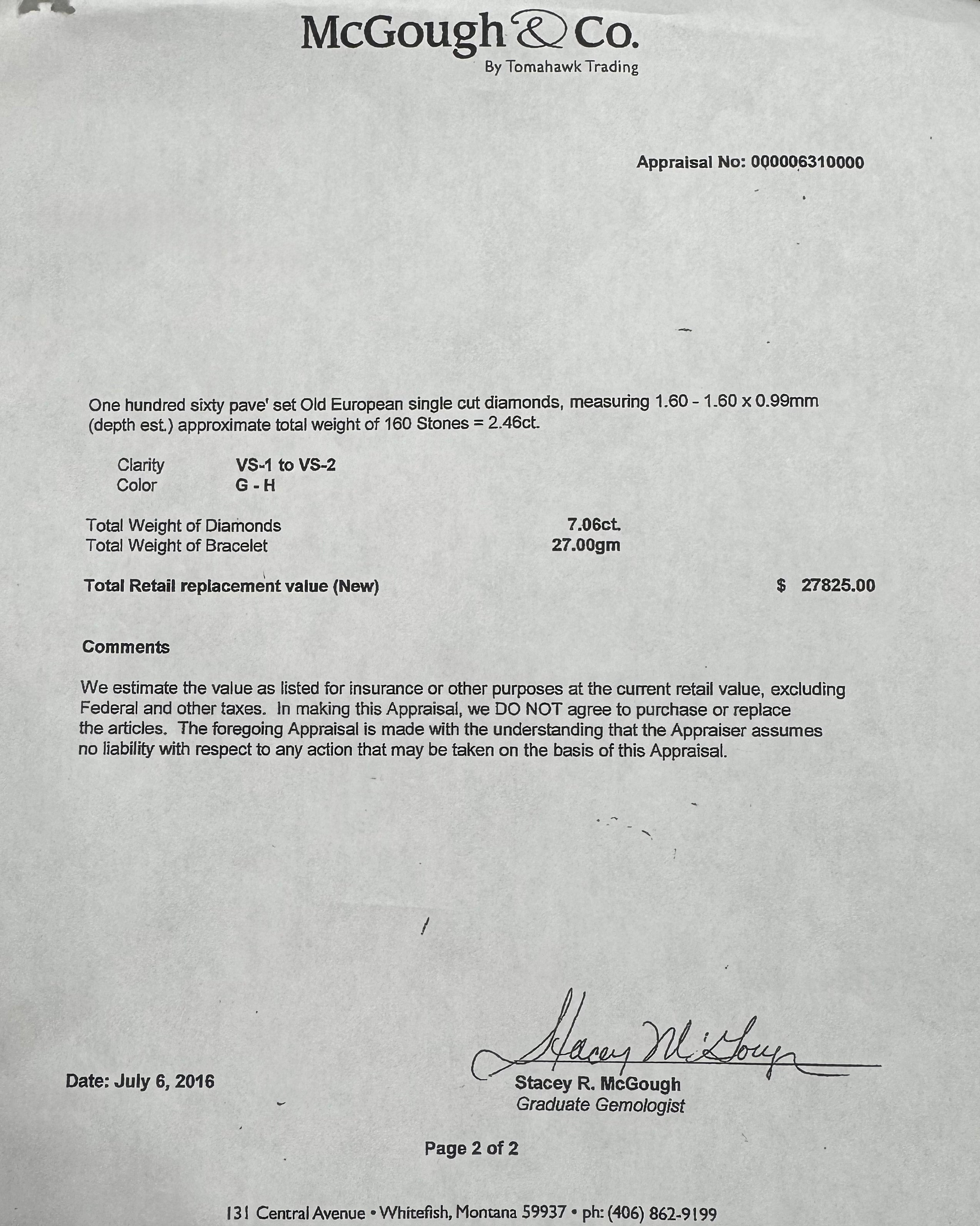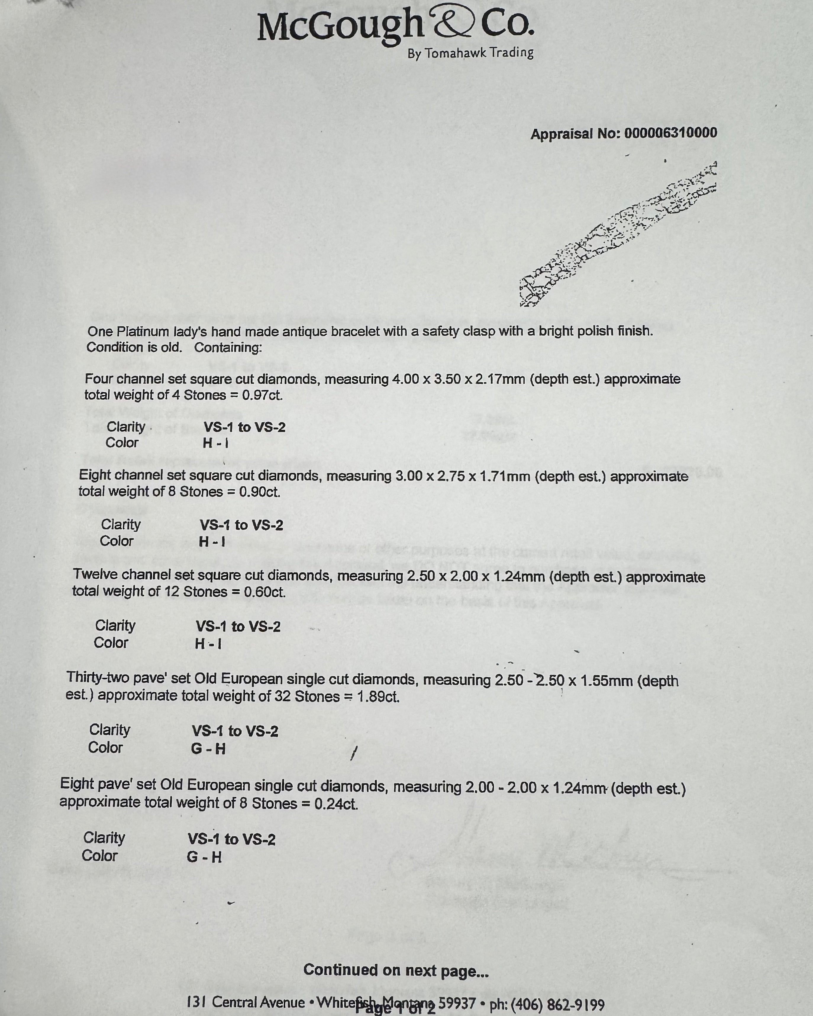 The bracelet is set with 160 Old European Cut diamonds that weigh approximately 2.46 carats in total, with colors estimated to be G-H and clarities estimated VS1-VS2.