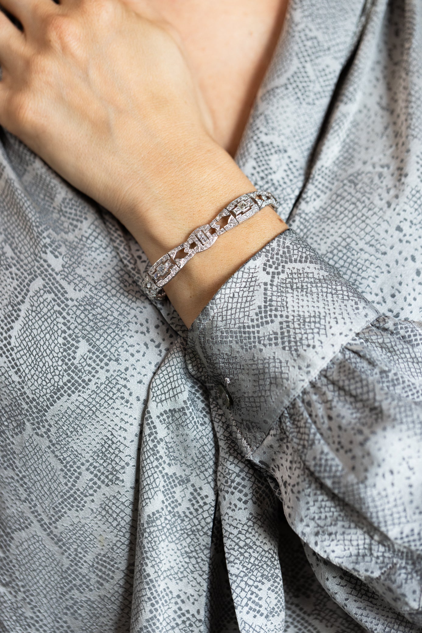 Art Deco Geometric 7.06 Ctw. Mixed Cut Diamond Bracelet