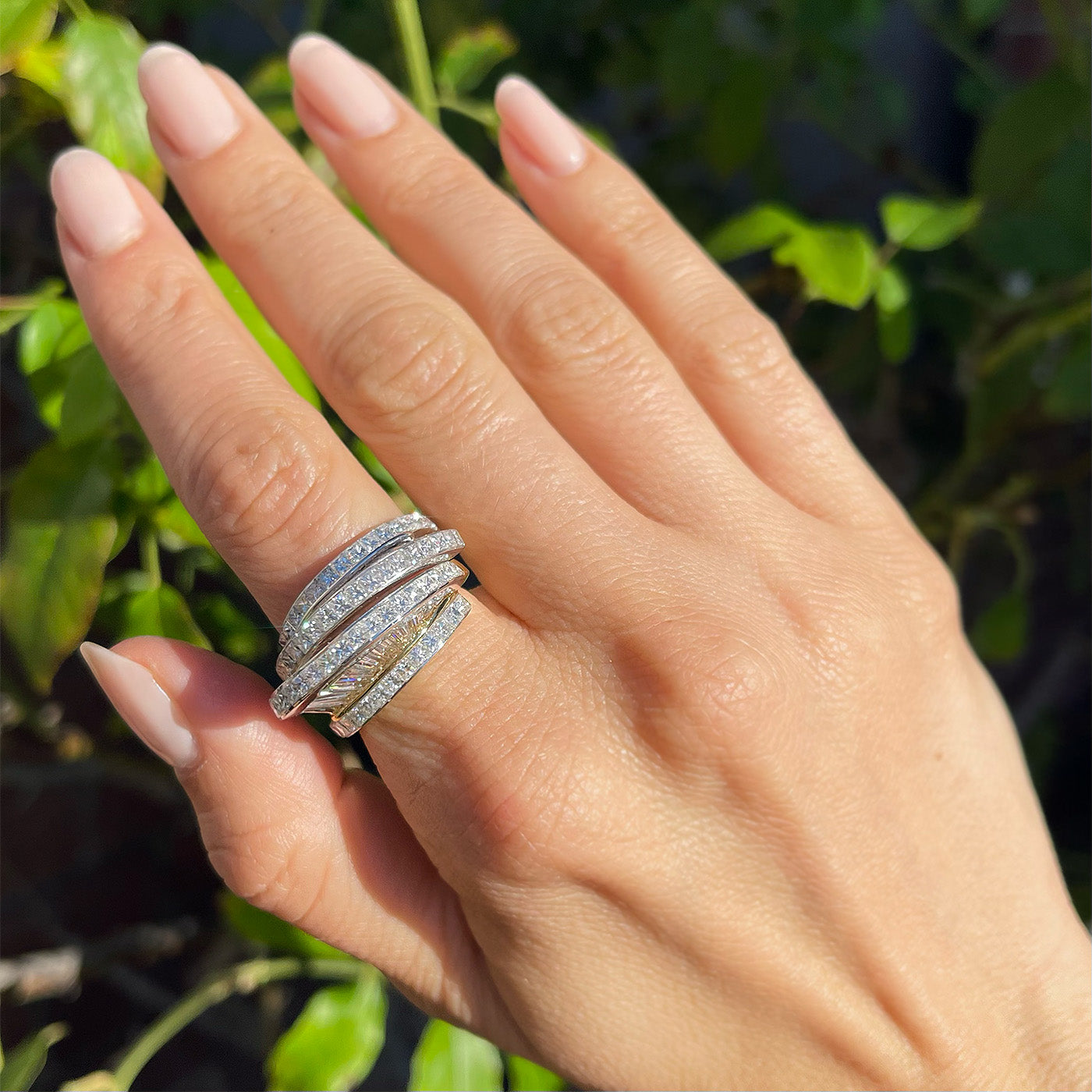 Vintage 8.00 Ctw. Baguette Cut & Princess Cut Diamond 'Fan' Ring Set By MWI ELOQUENCE