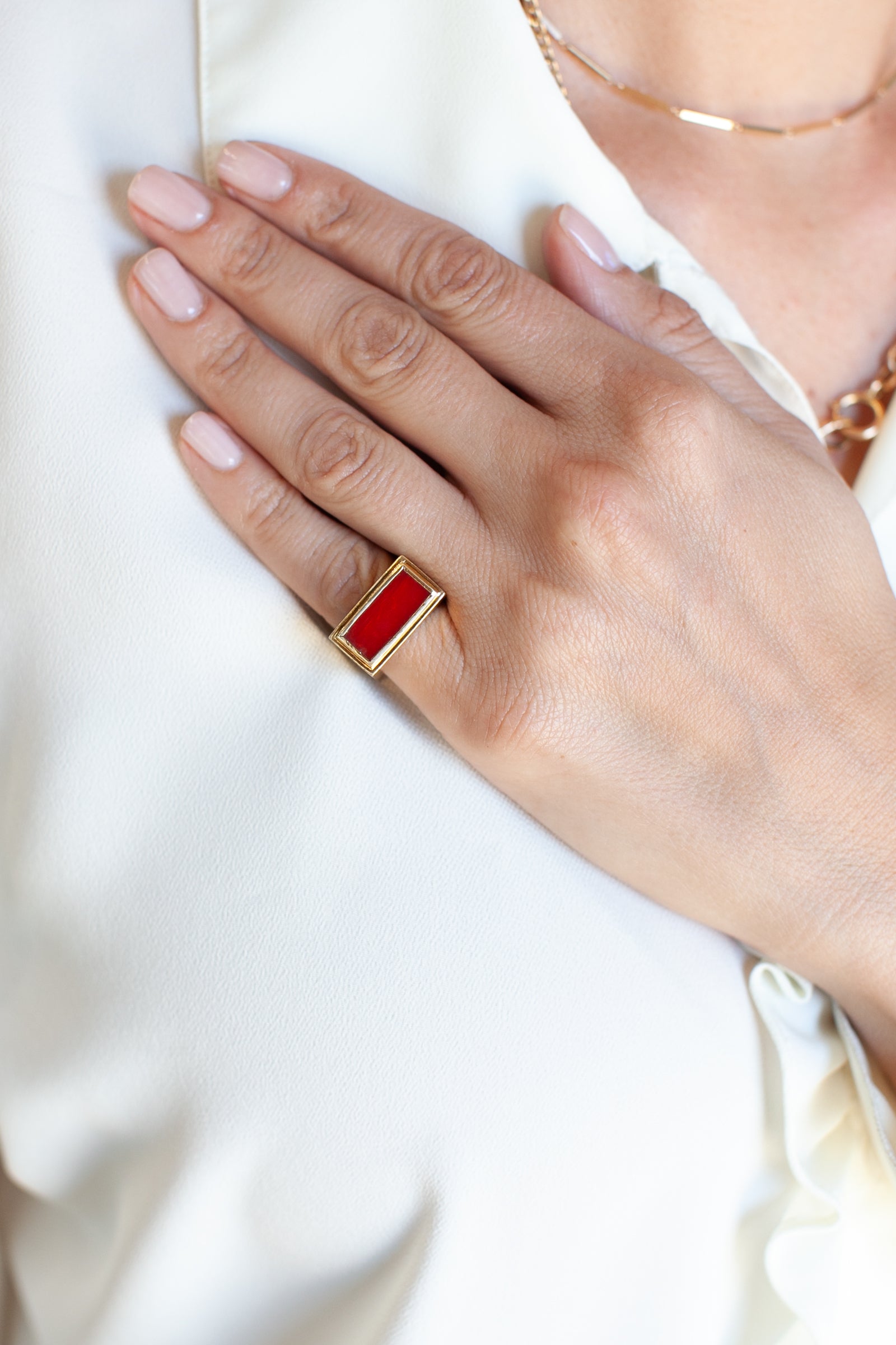Vintage Coral & Black Jade Square Ring from Tiffany & Co.