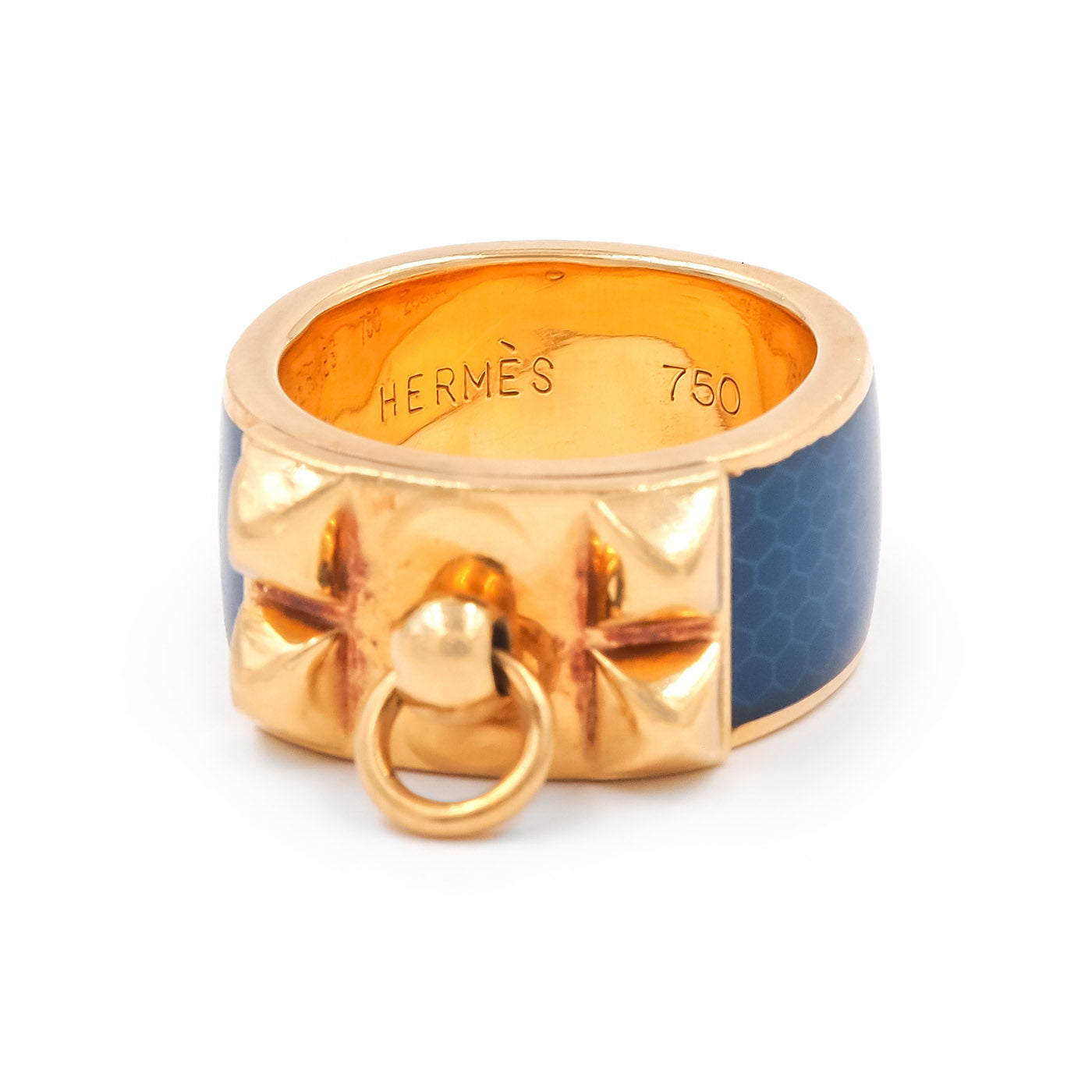 Vintage Collier de Chien Blue Enamel Ring by Hermès