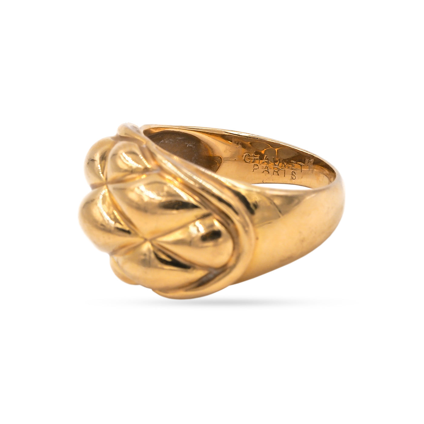 Vintage Textured Gold Dome Ring by Chaumet Paris composed of 18k yellow gold. French hallmarks, stamped ‘Chaumet Paris’.