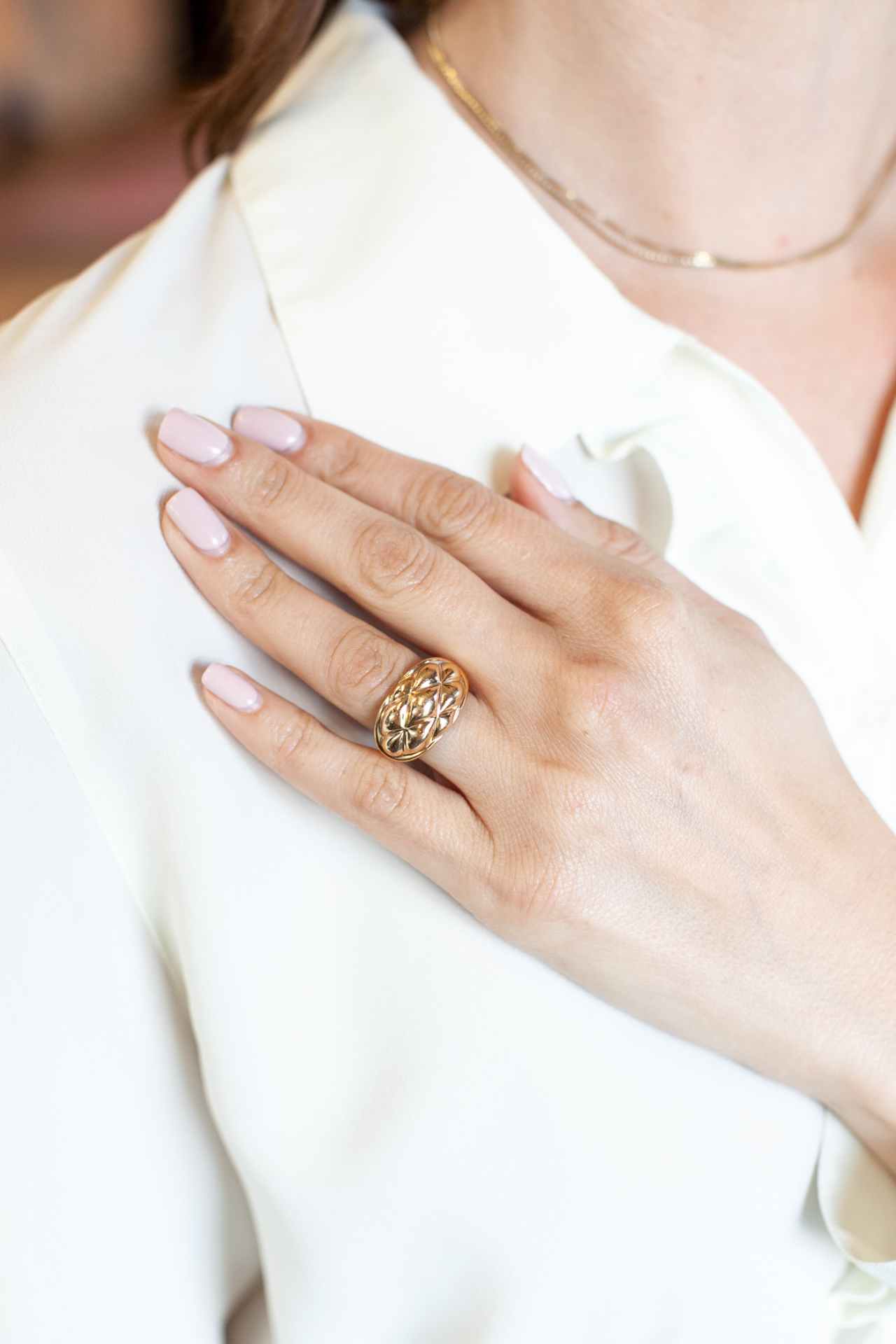 Vintage Textured 18k Gold Dome Ring By Chaumet Paris
