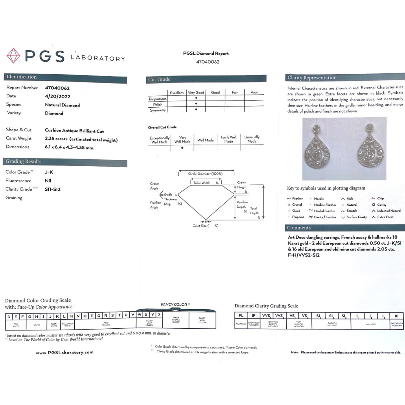 Stones: 2.35 Ctw. Old Mine Cut Diamonds (PGS Certified, see photo);