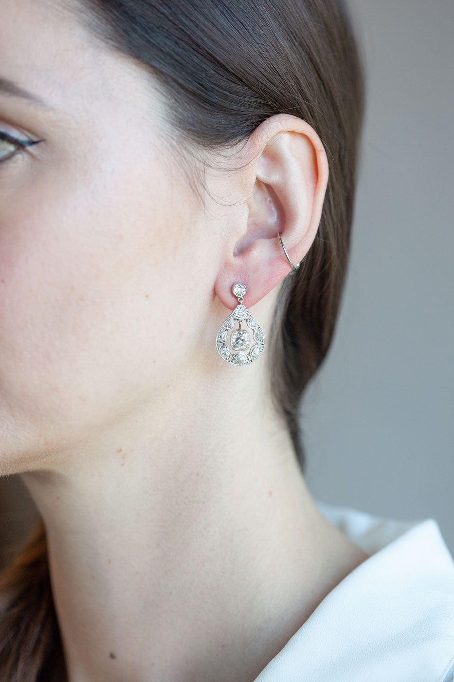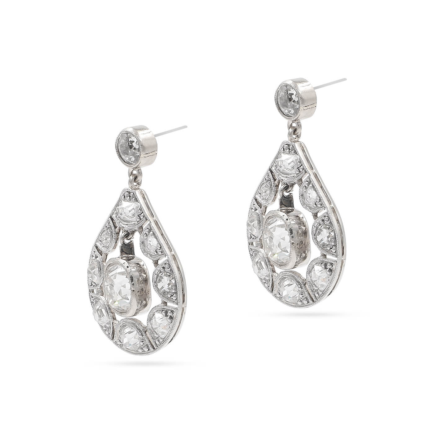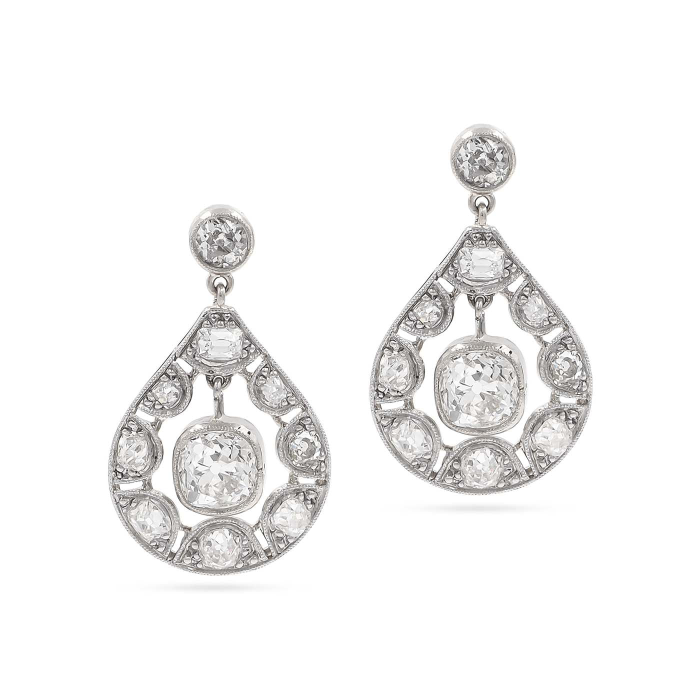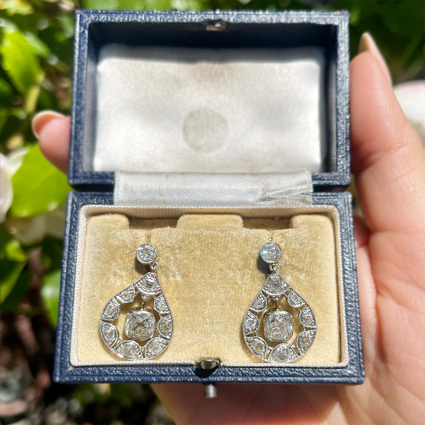 Art Deco 2.35 Ctw. Old Mine Cut Diamond Geometric Drop Earrings