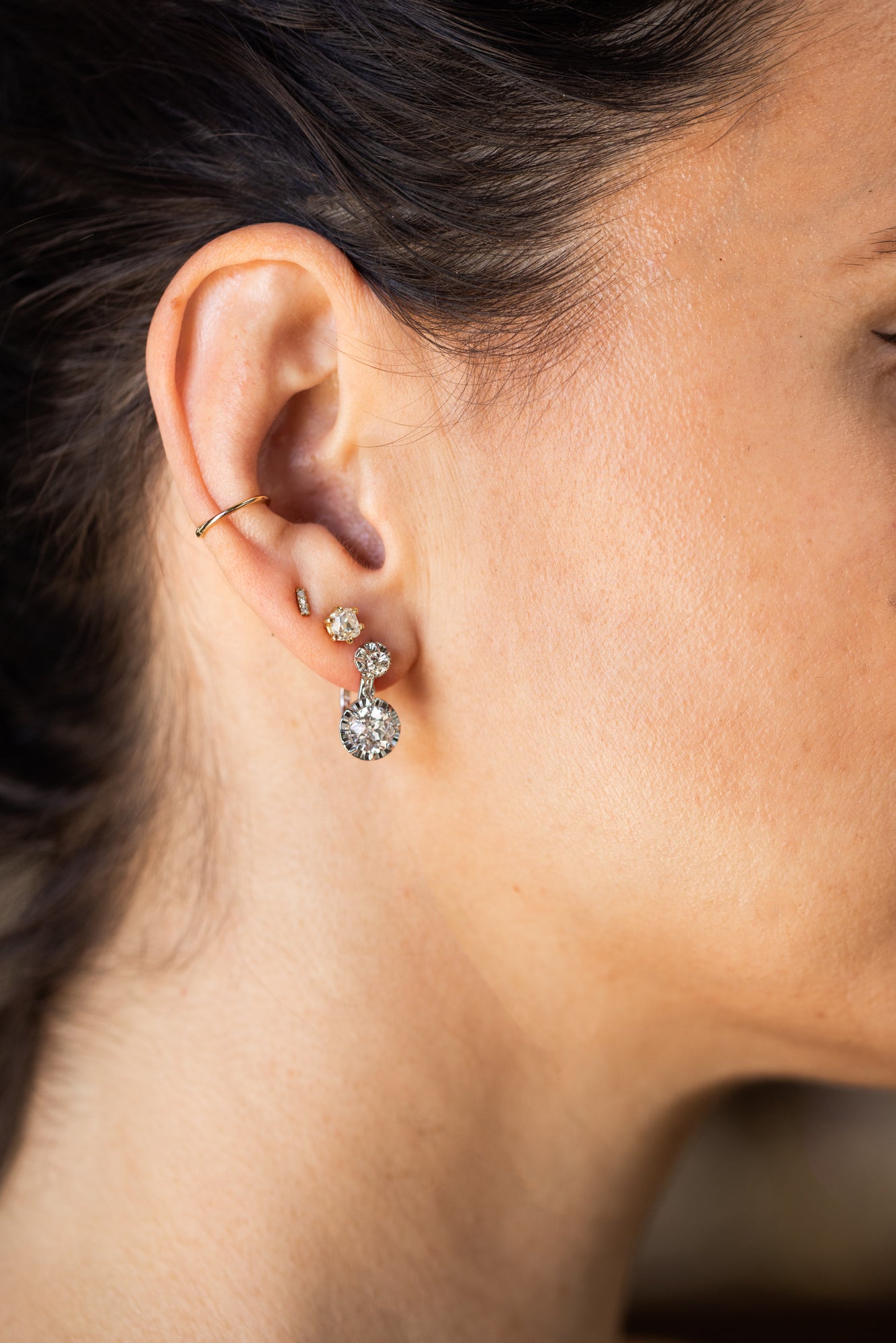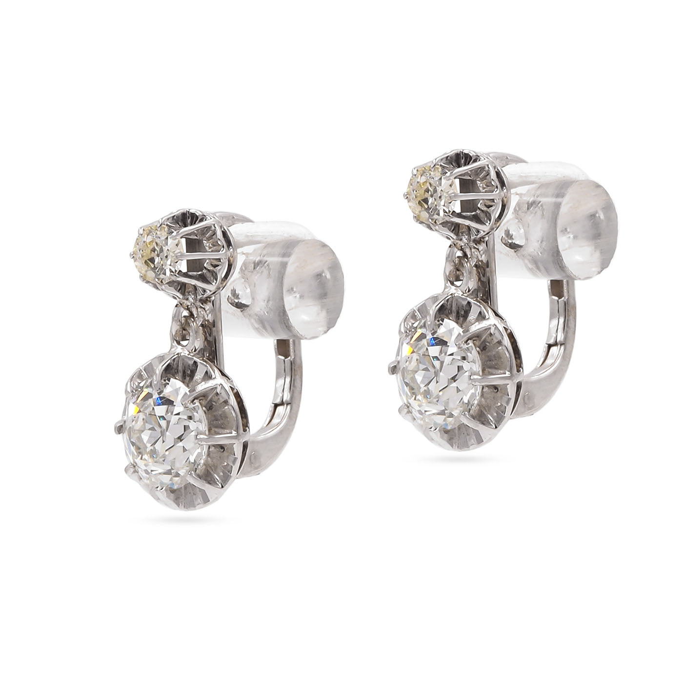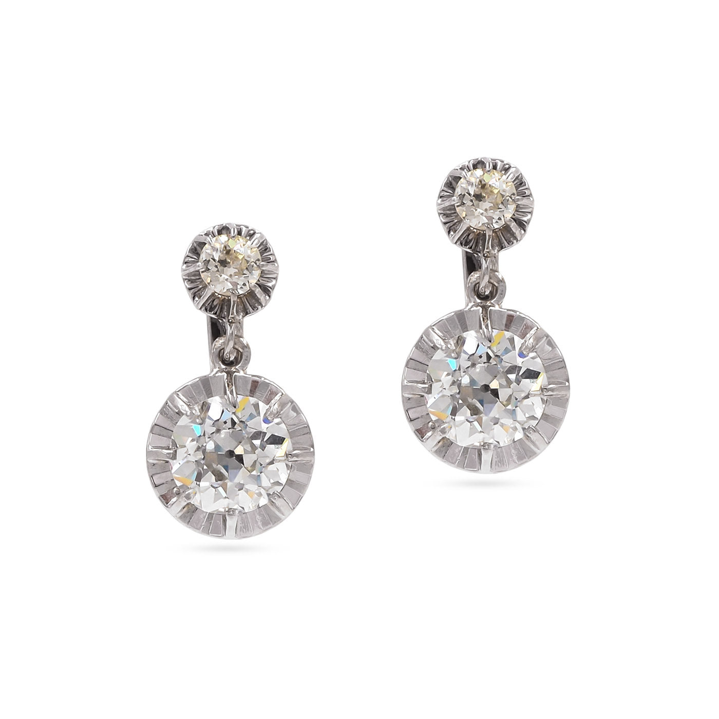 Art Deco 2.61 Ctw. Old European Cut Diamond Drop Earrings