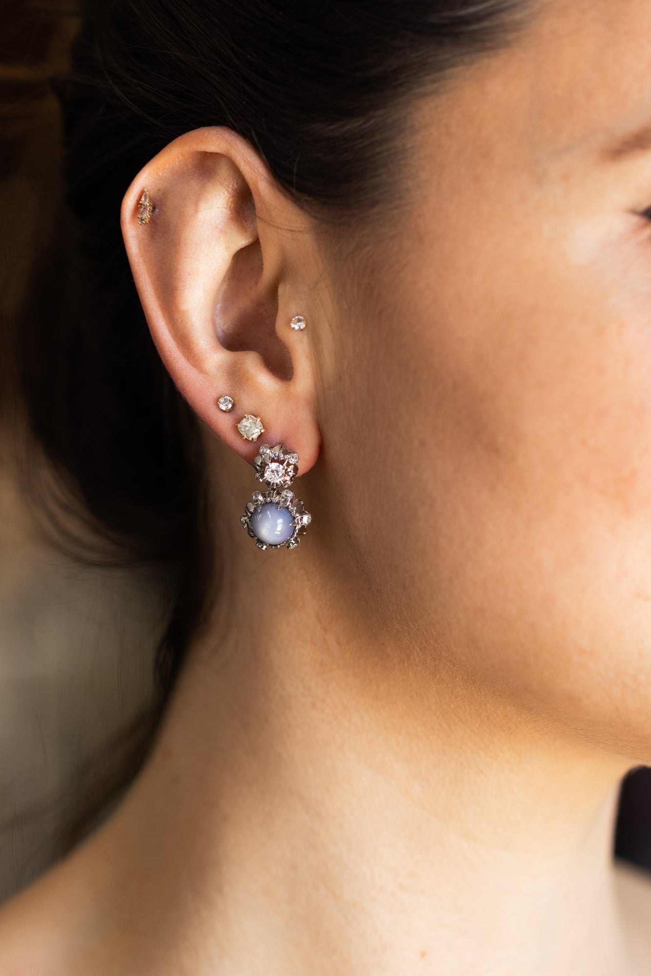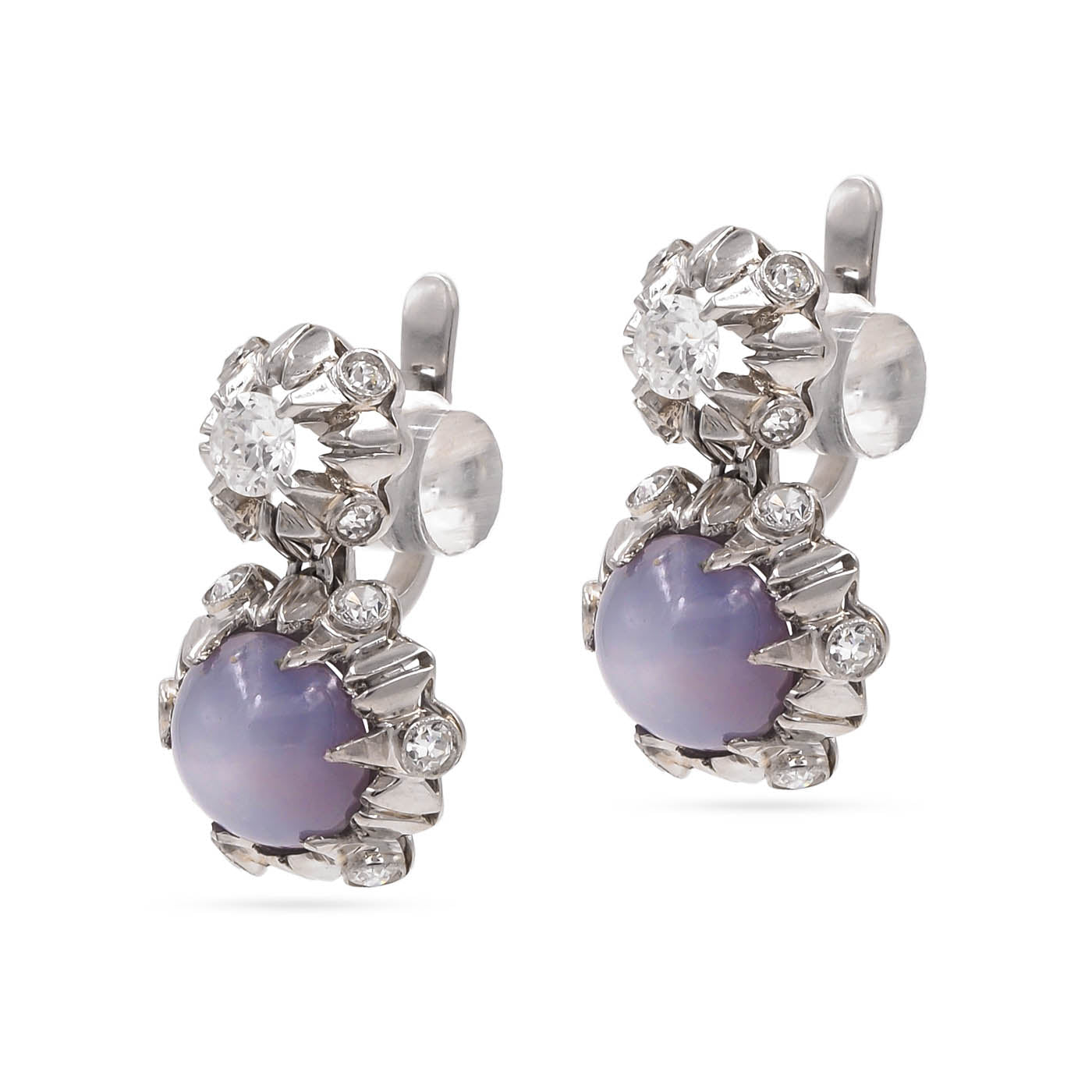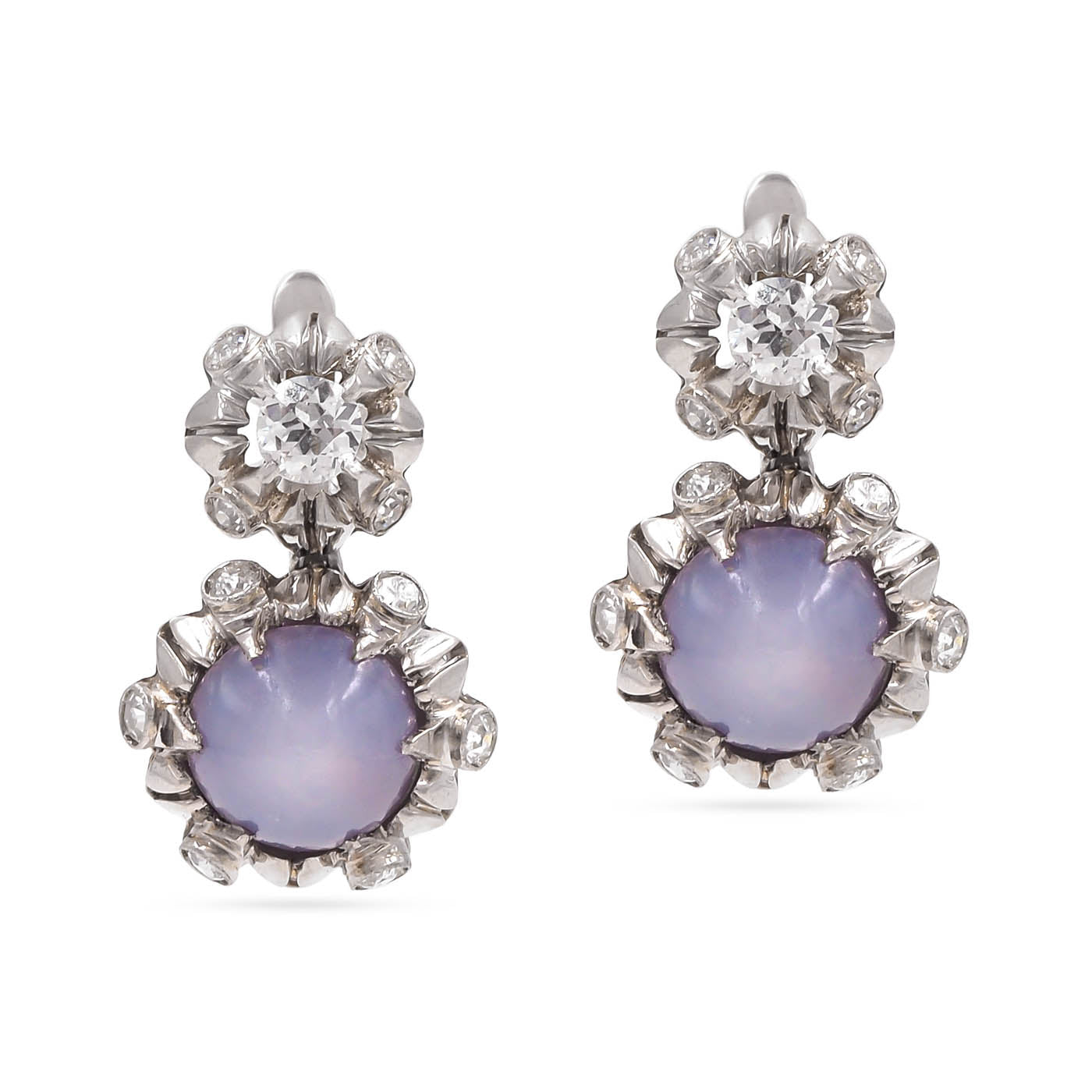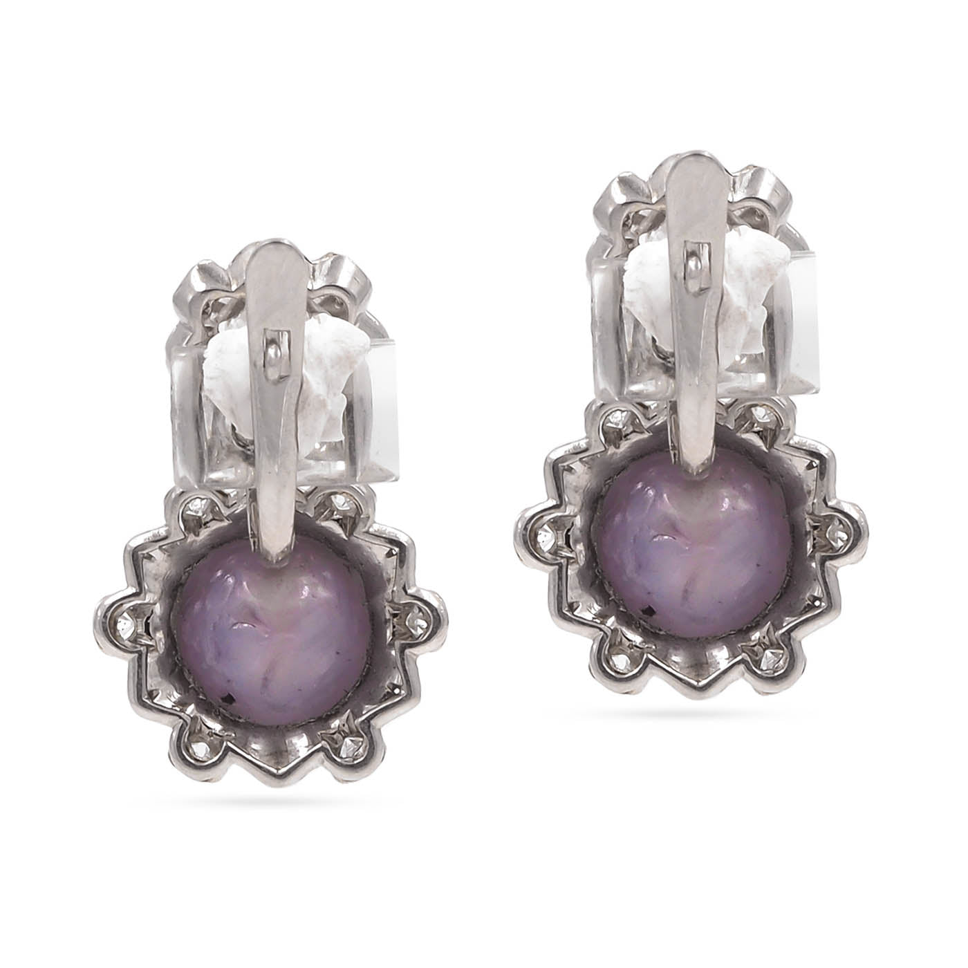 Mid-Century Star Sapphire & Diamond Drop Earrings