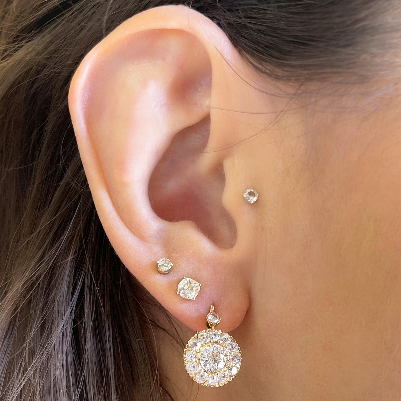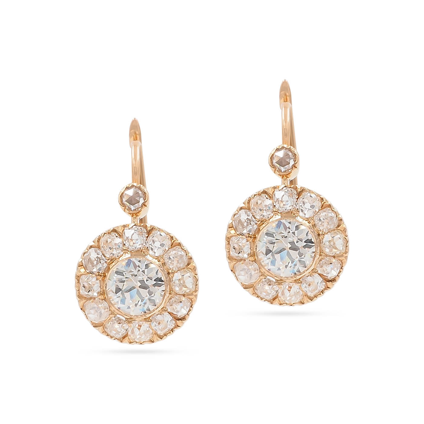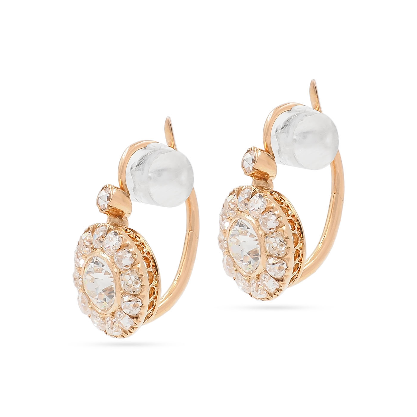 Victorian 1.58 Ctw. Old European Cut Diamond Cluster Drop Earrings