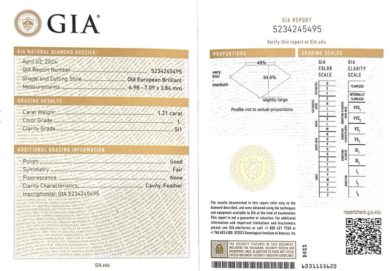 Edwardian 1.21 Ct. Old European Cut Diamond Solitaire Engagement Ring
