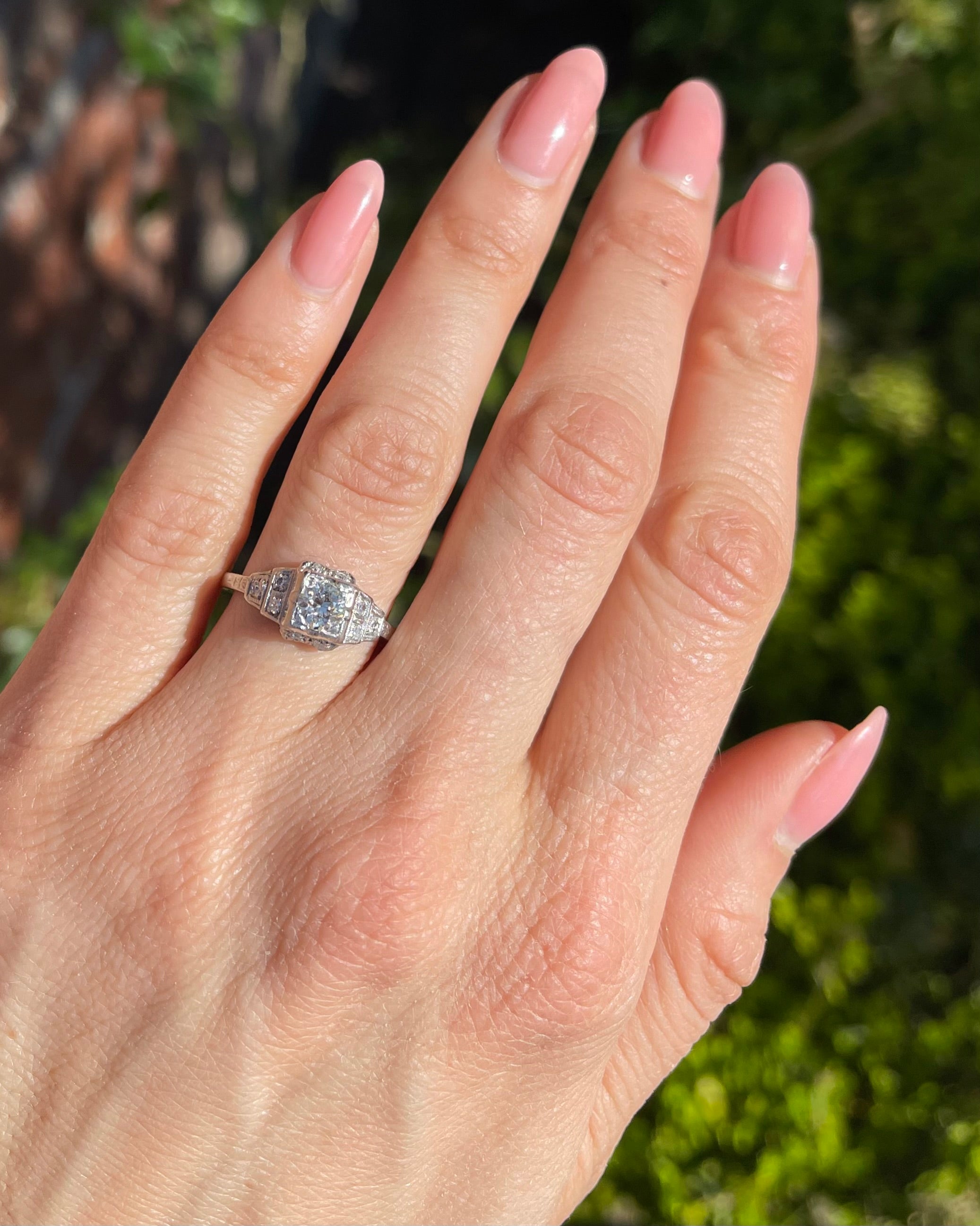 Art Deco 0.50 Ct. Old European Cut Diamond Engagement Ring