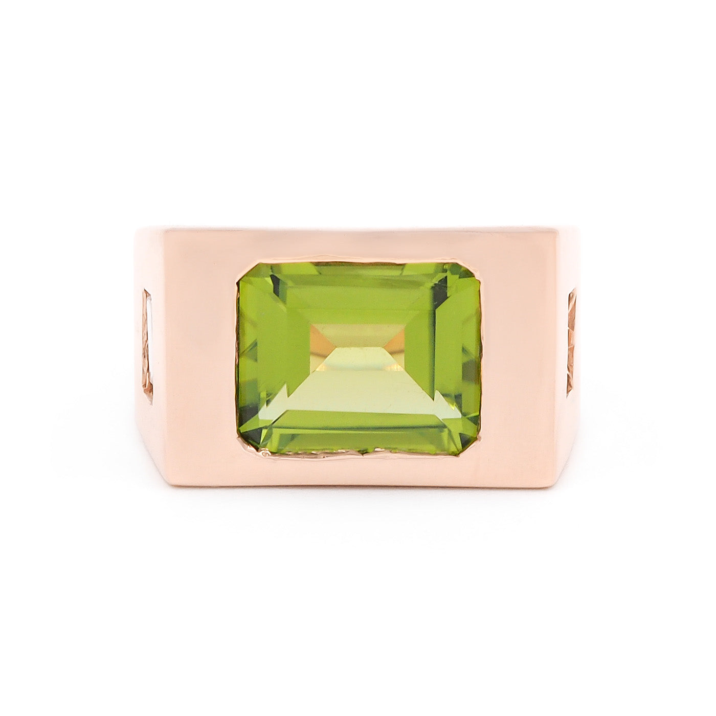 Vintage 5.28 Ct. Peridot & Diamond Signet Ring by Arlene Altman