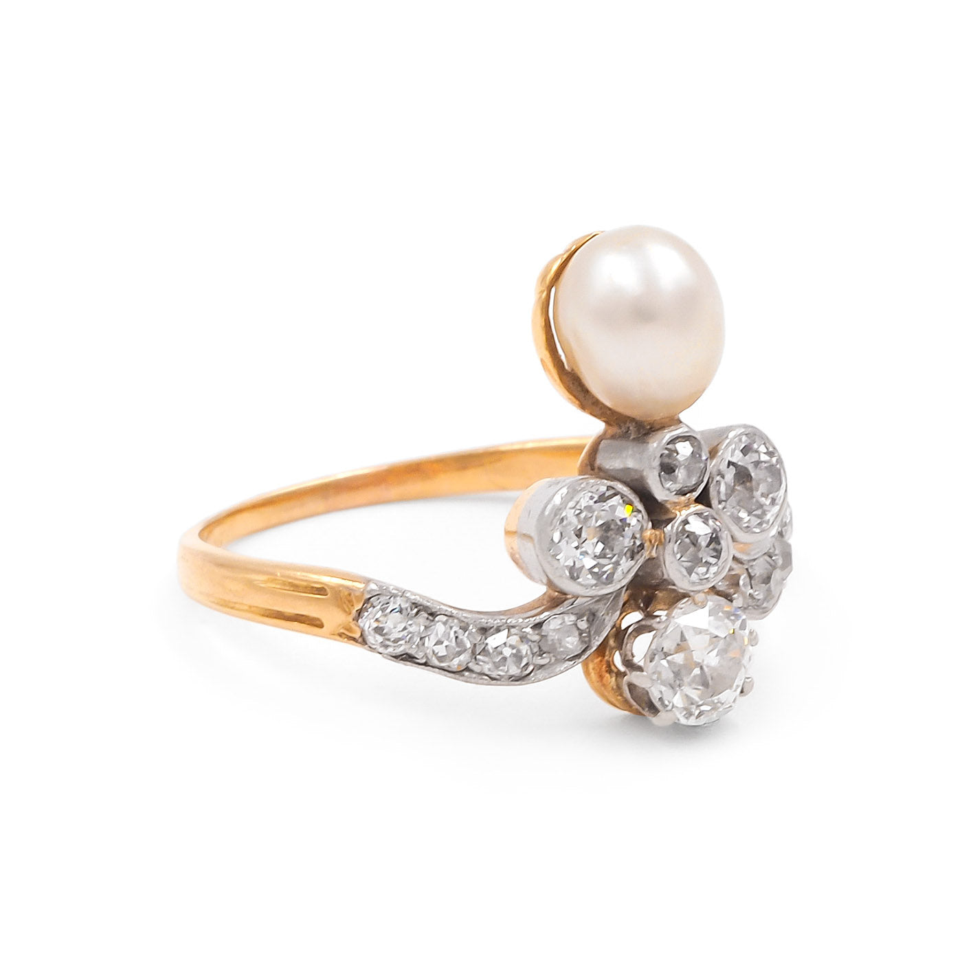 Stones: 1 Natural Pearl; 1.00 Ctw. Old Mine & Old European Cut Diamonds