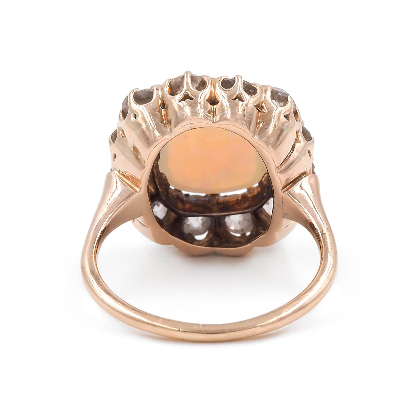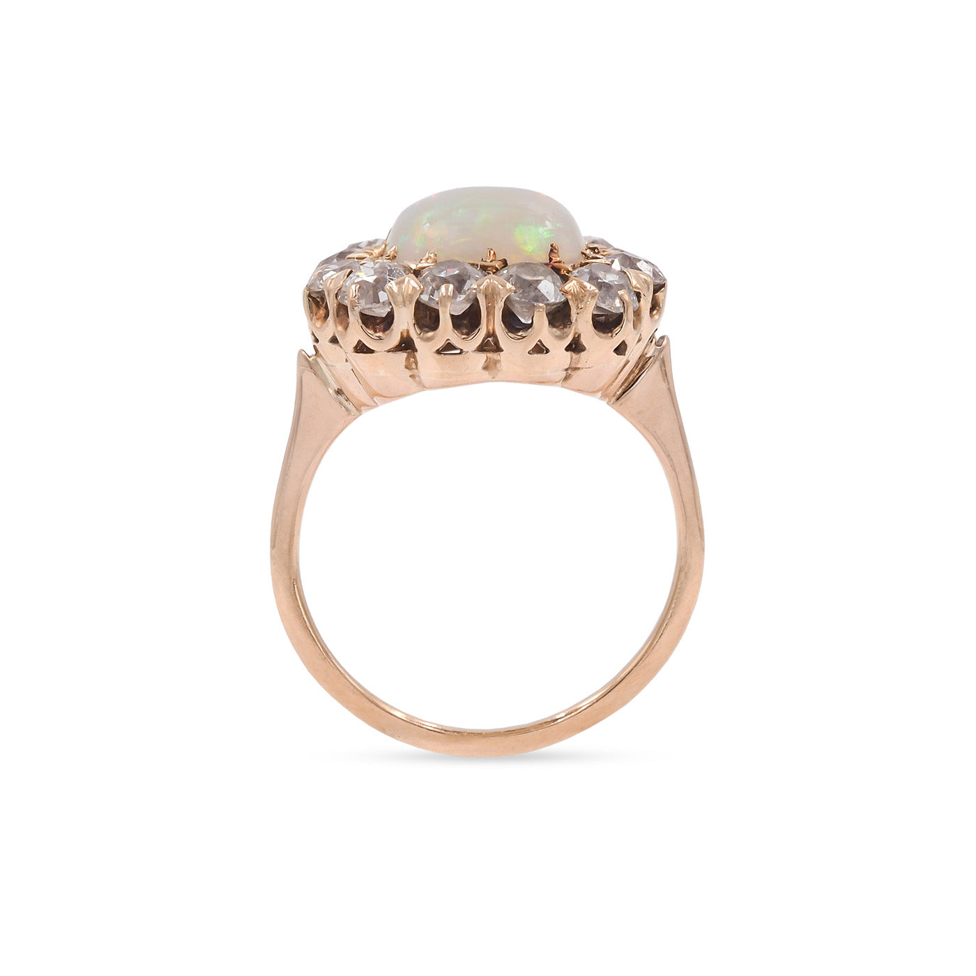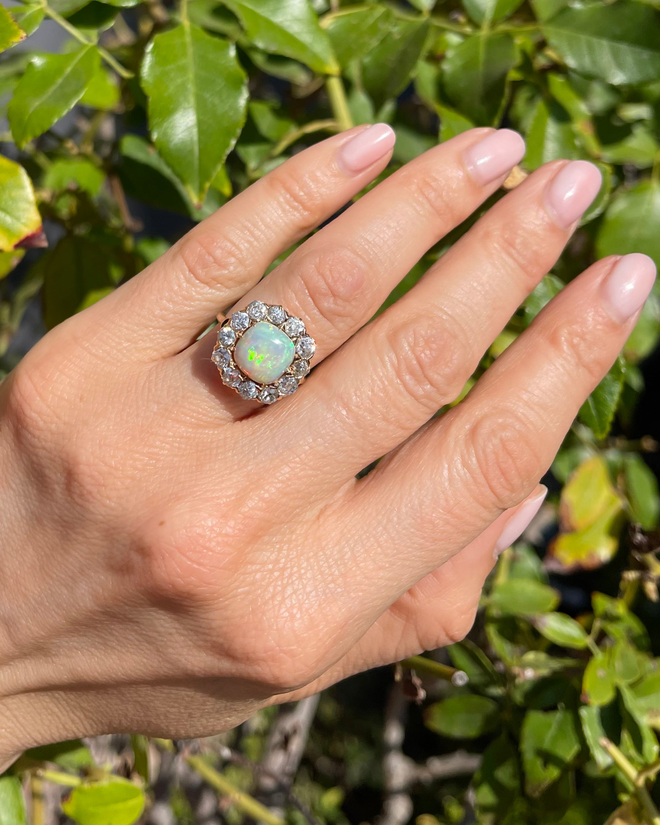 Victorian Opal & Old Mine Cut Diamond Cluster Ring