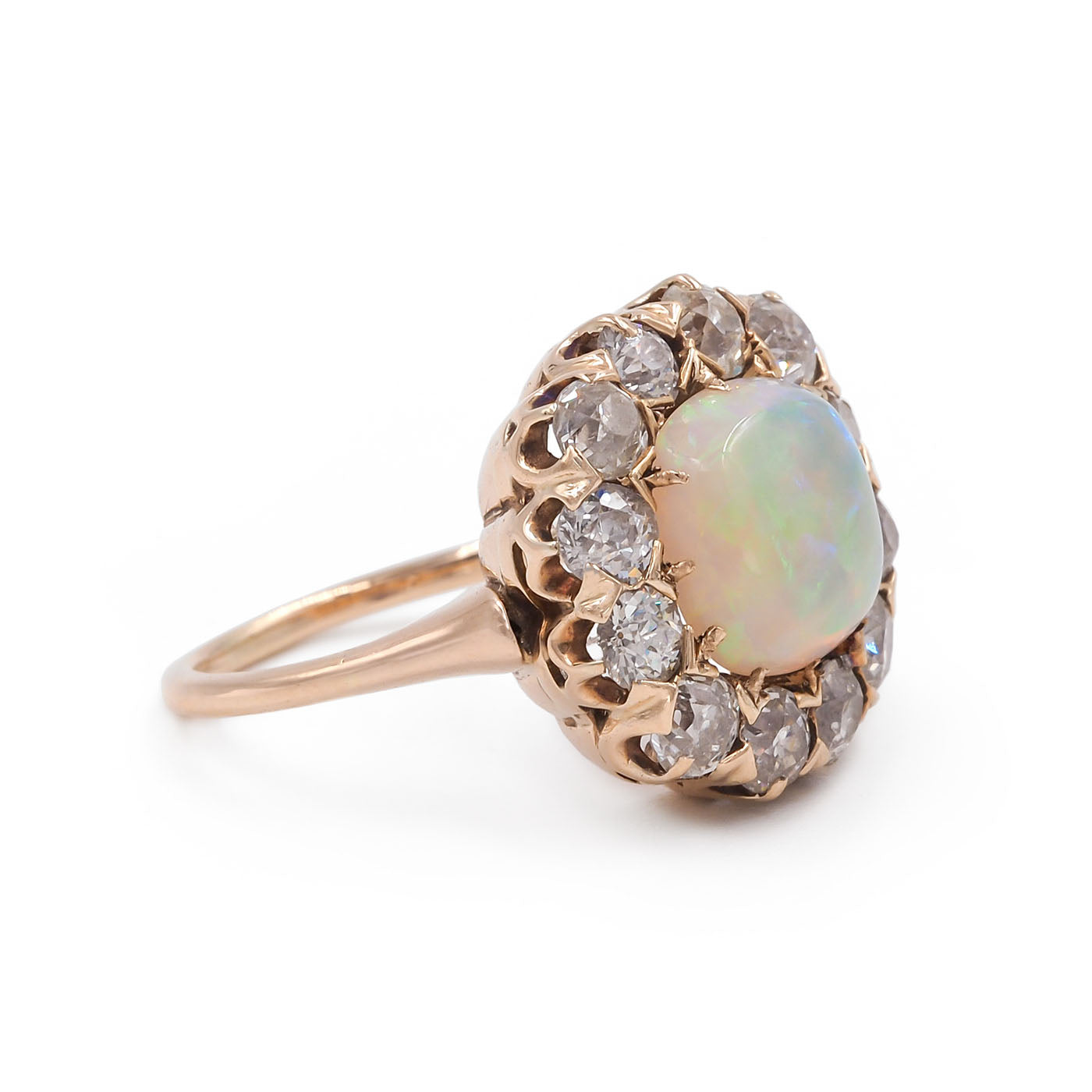 Stones: 1.87 Ct. Cabochon Opal; 1.56 Ctw. Old Mine Cut Diamonds