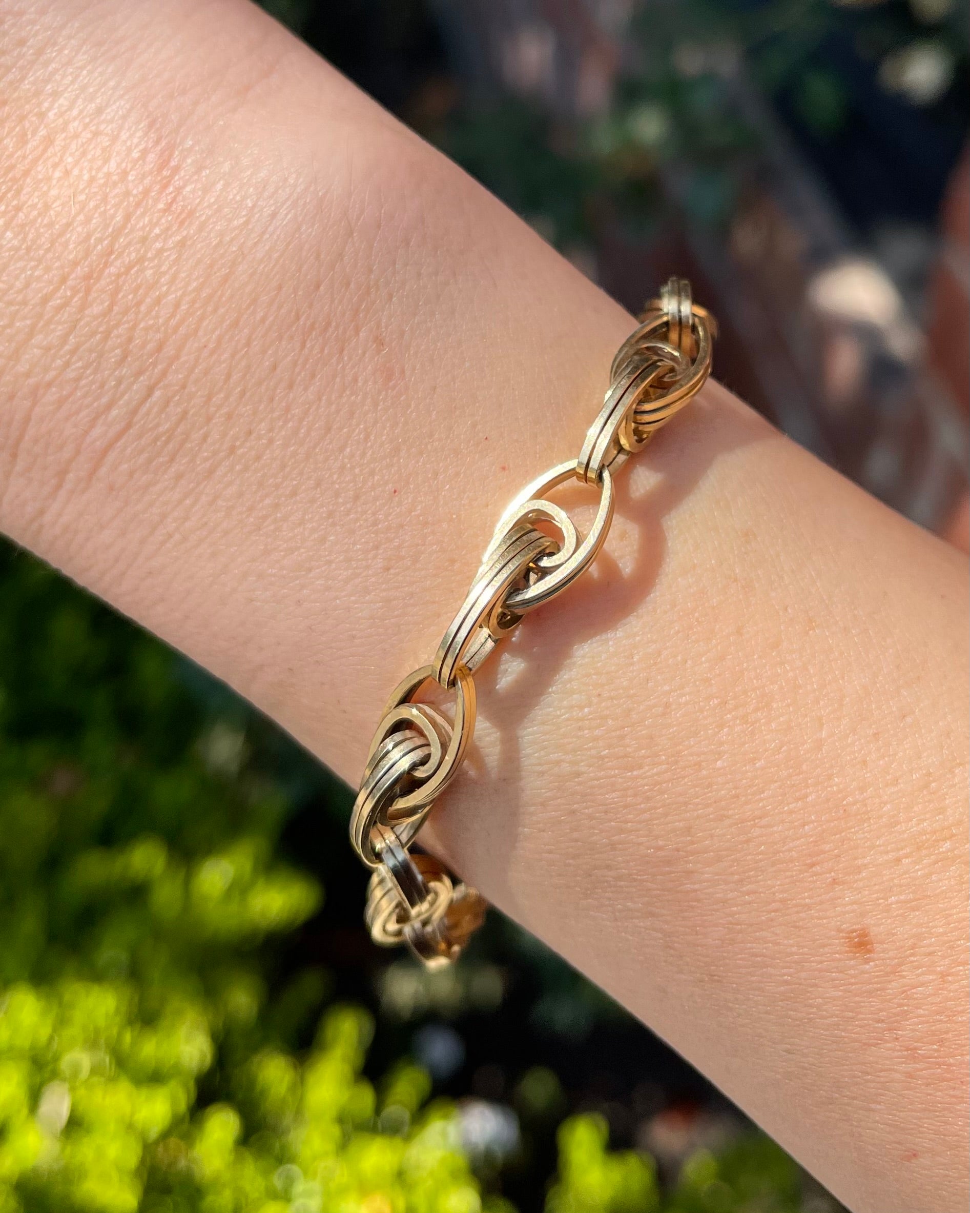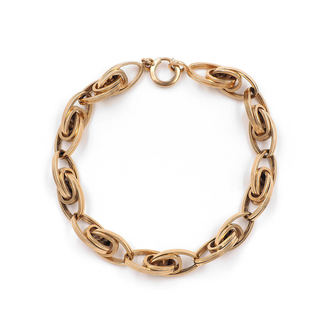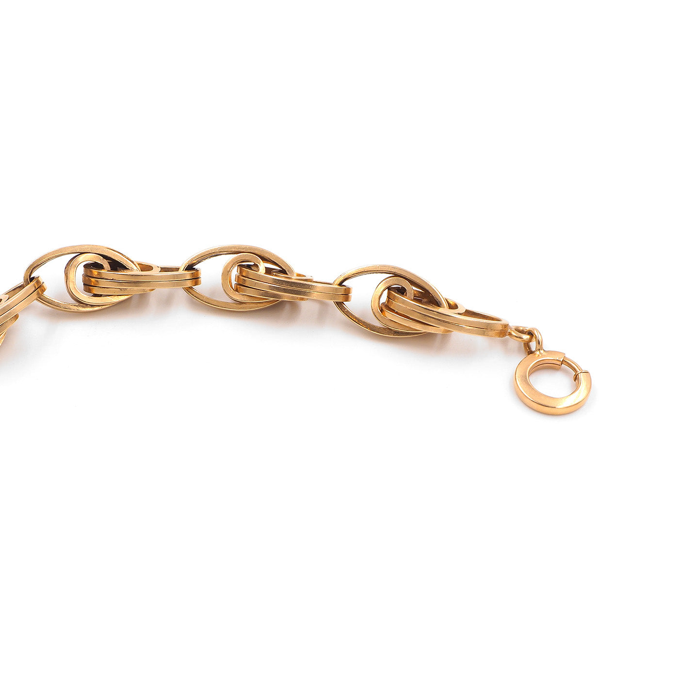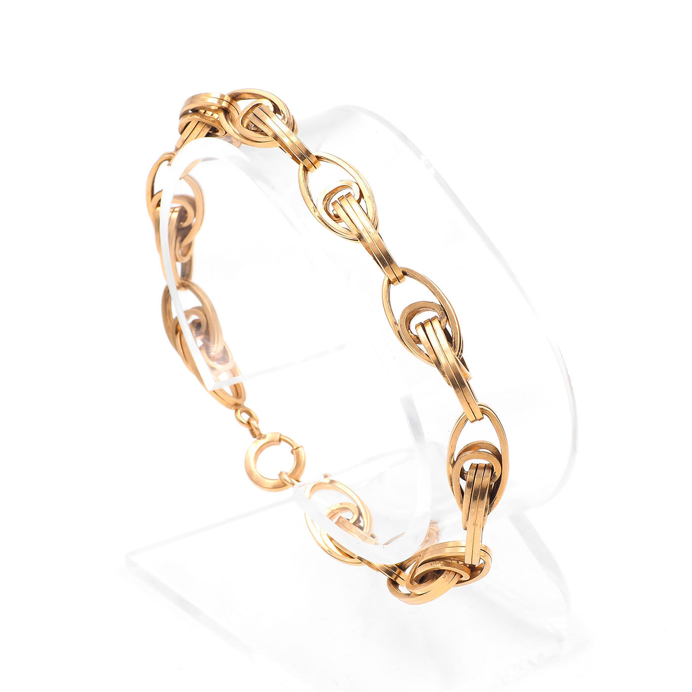 Retro Oval Spiral Link Gold Chain Bracelet composed of 14k yellow gold. Featuring oval spiral-style links. The bracelet measures approximately 7 3/4" long and 8 mm wide, weighs 20.9 grams. With a larger O-ring clasp. Circa 1940's.
