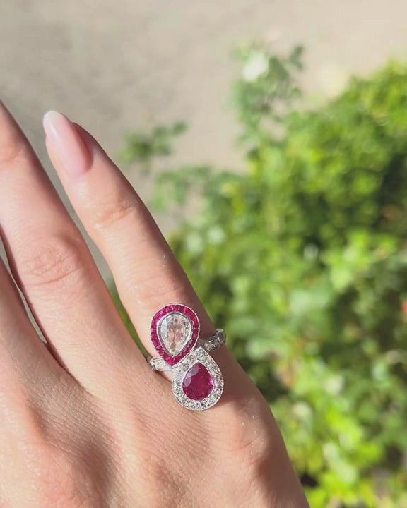 Art Deco Pear-Shaped 1.38 Ct. Ruby & 0.90 Ct. Pear-Shaped Diamond 2-Stone Ring