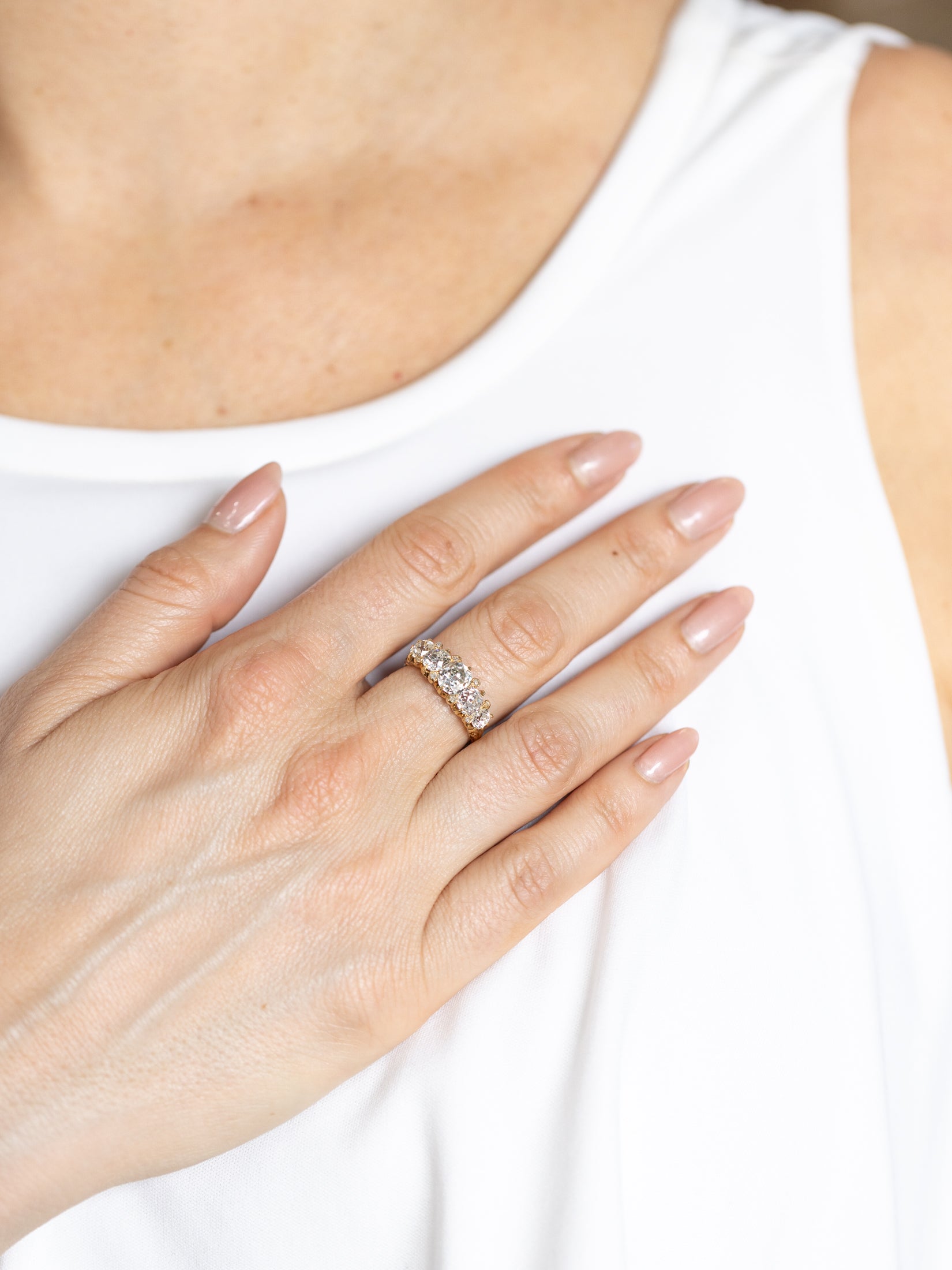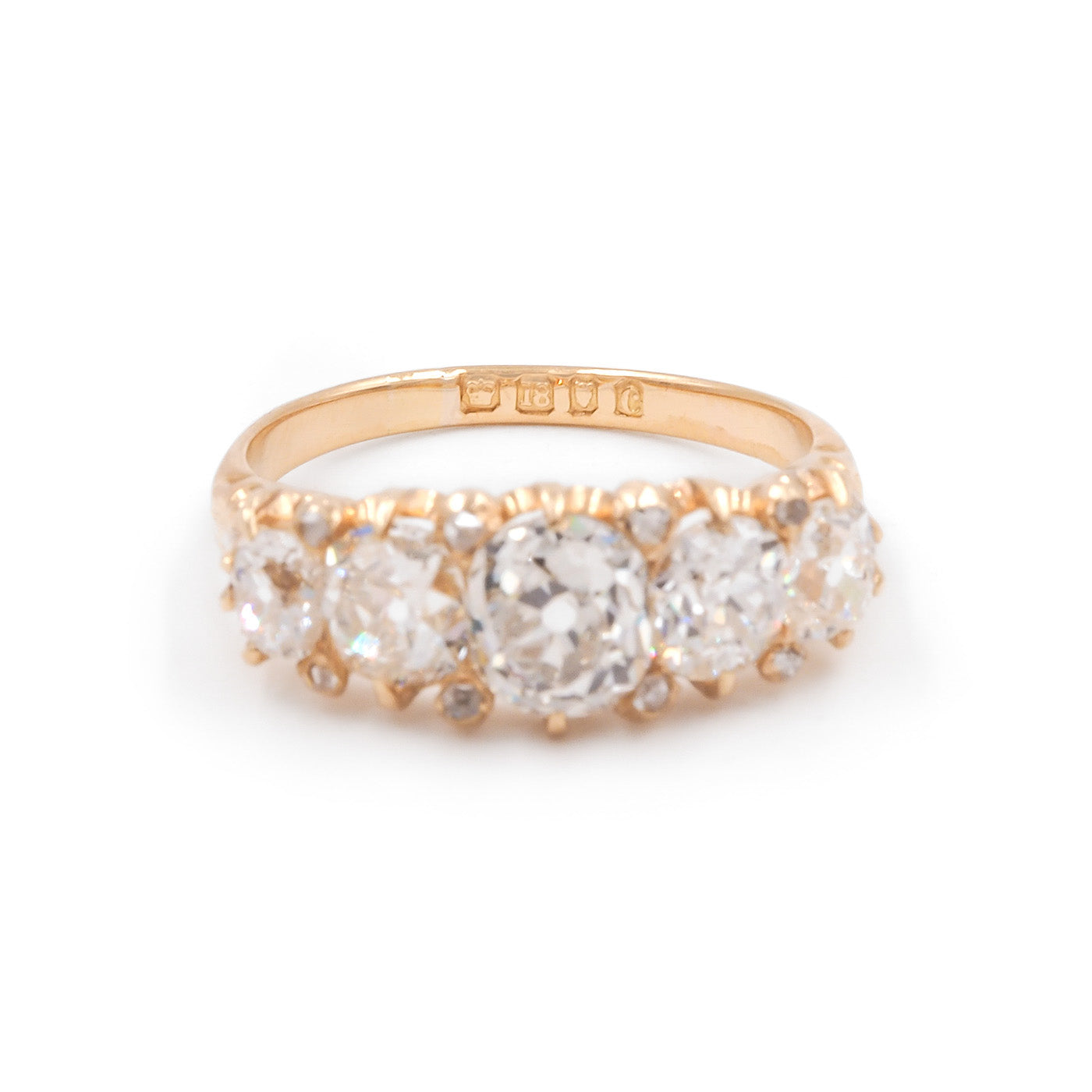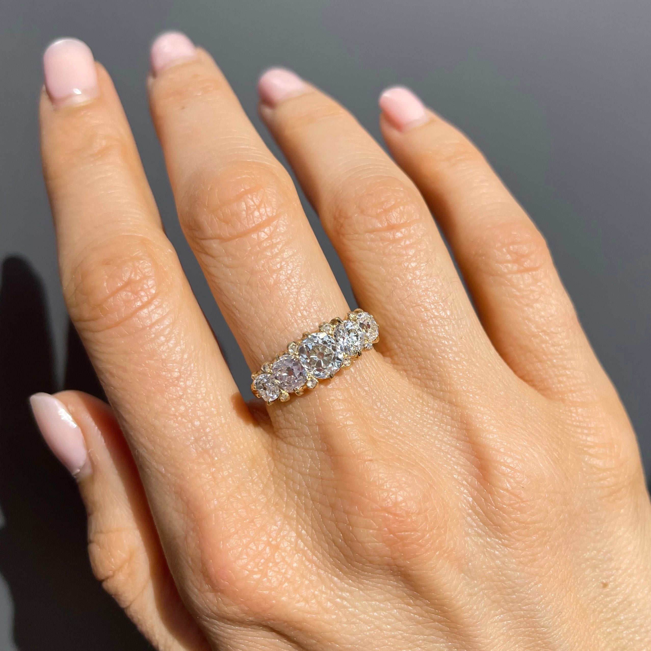 Victorian 1.22 Ct. Center Old Mine Cut Diamond 5-Stone Ring