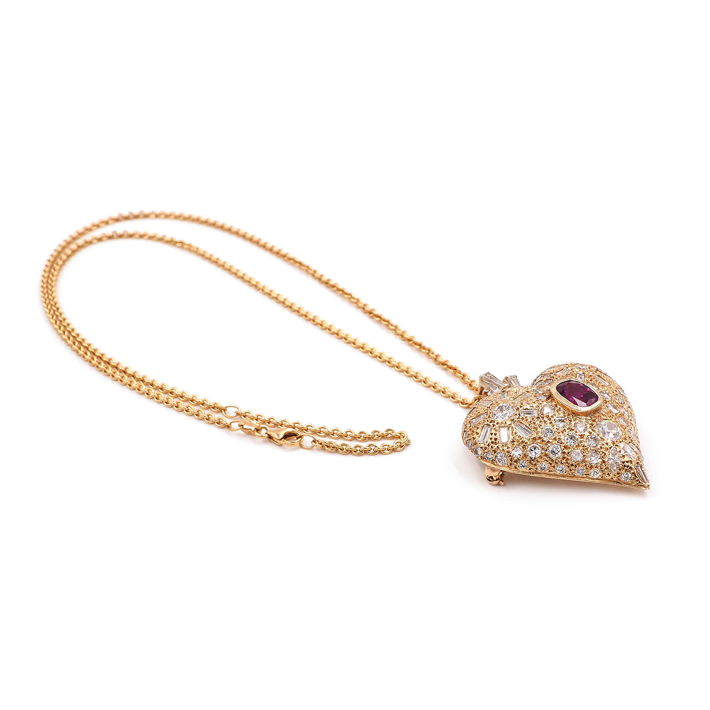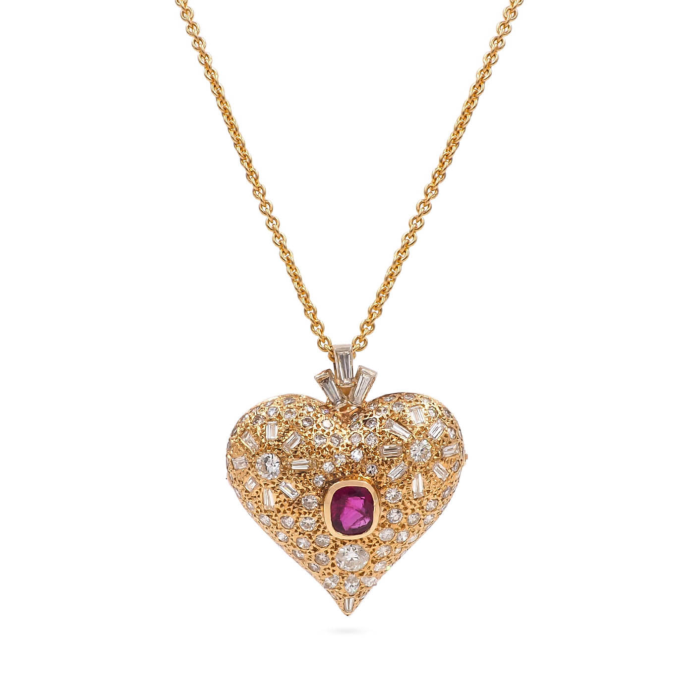 Vintage 1.56 Ct. Ruby & Diamond Heart Pendant Necklace