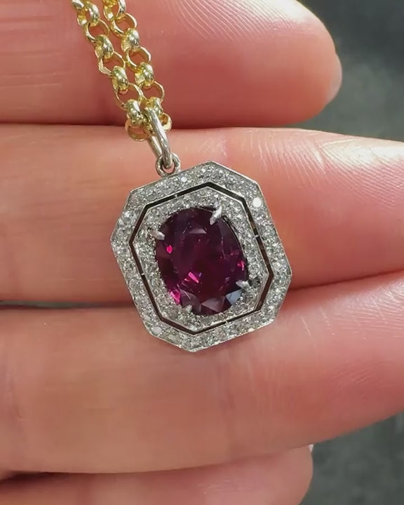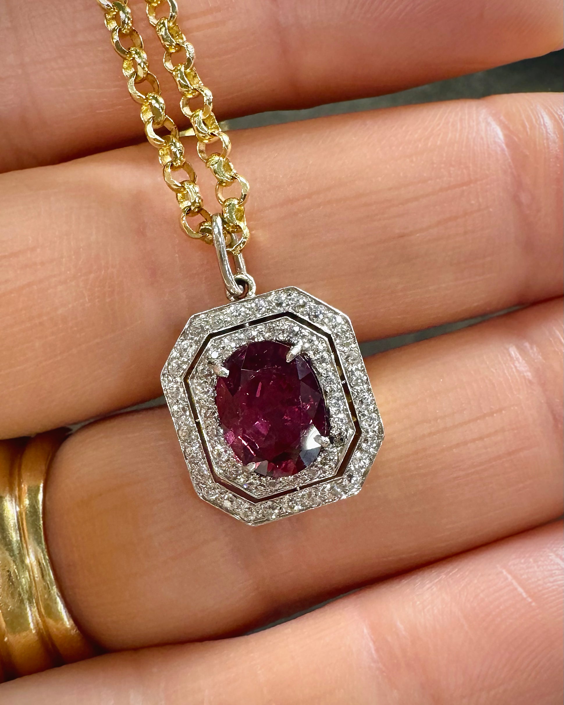Edwardian 1.82 Ct. Oval Ruby & Diamond Octagonal Cluster Pendant Necklace