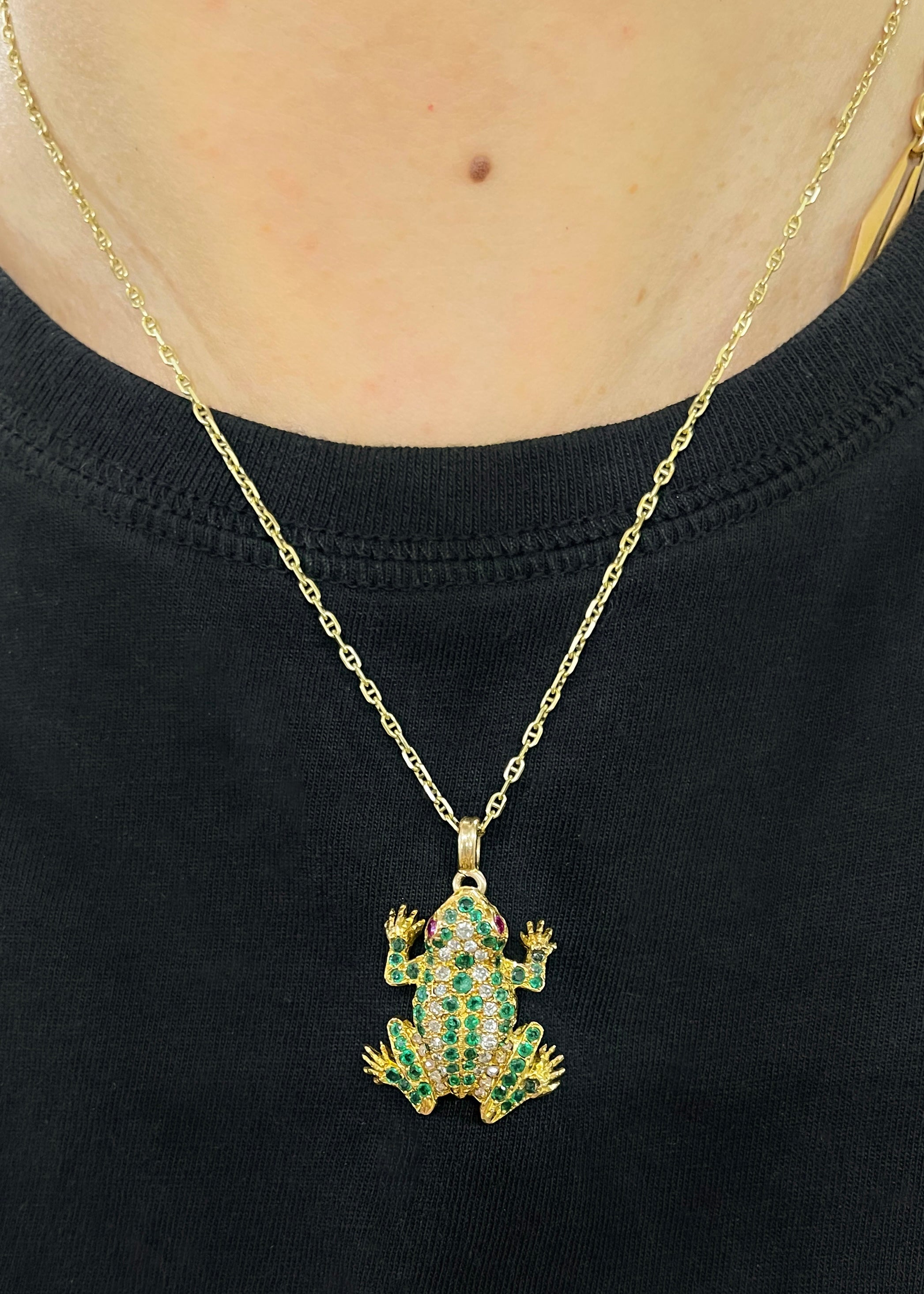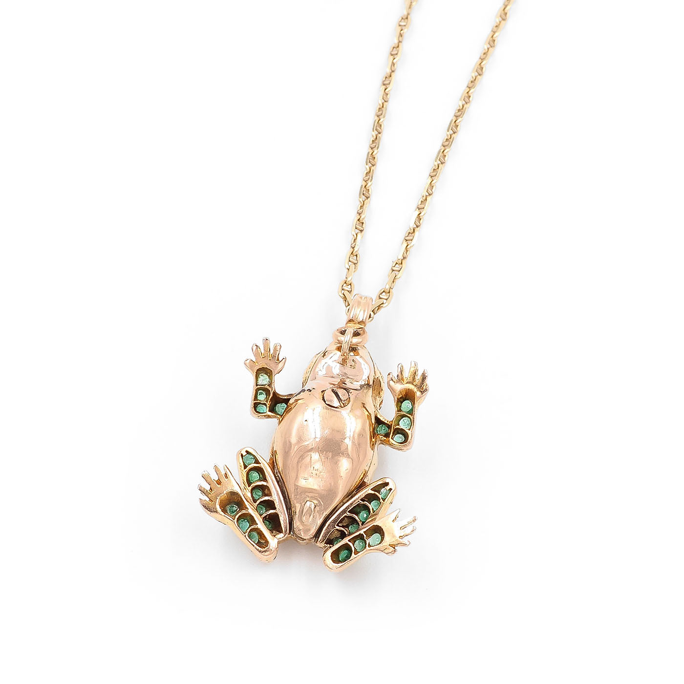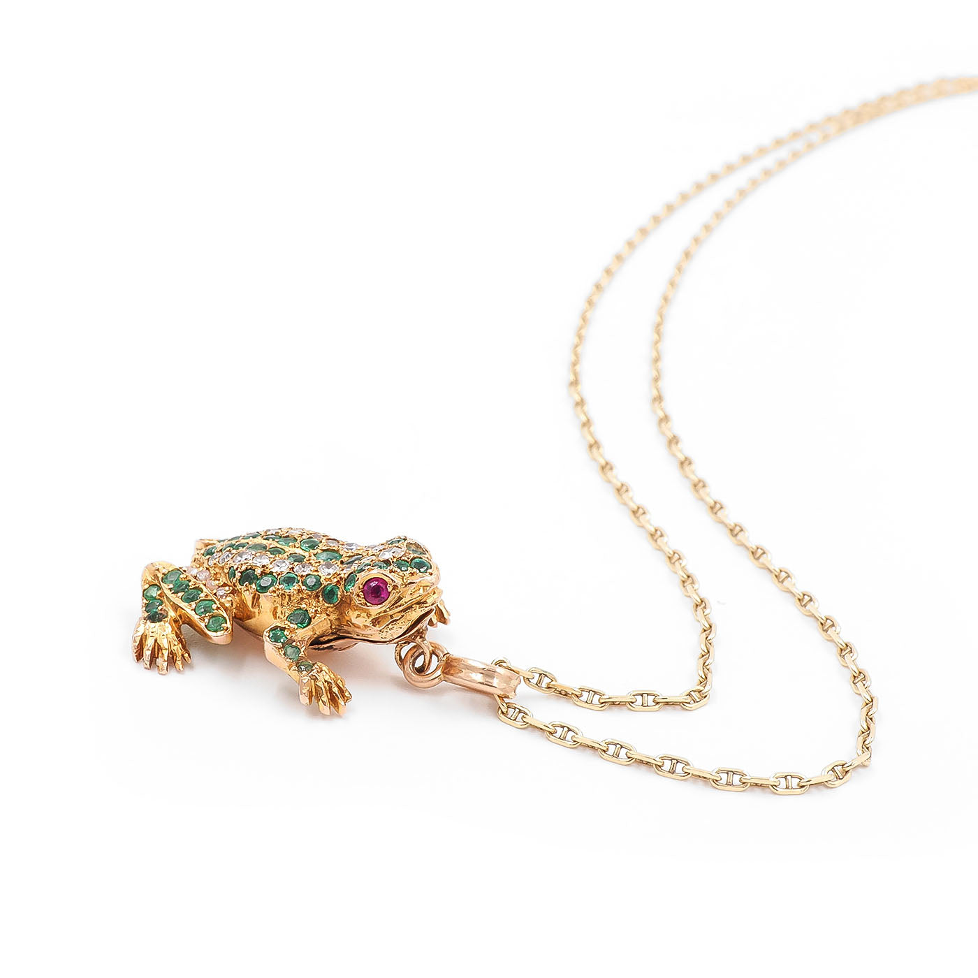 Retro Emerald & Diamond Frog Pendant Necklace