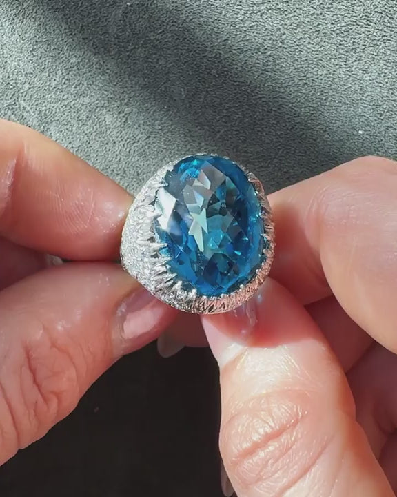 Vintage 'Icy' 23.00 Ct. Blue Topaz & 1.65 Ctw. Diamond Cocktail Ring