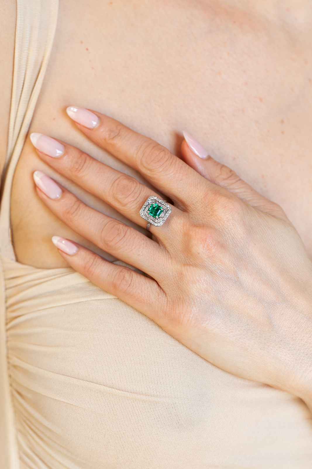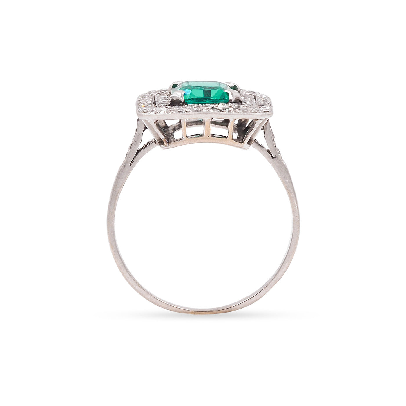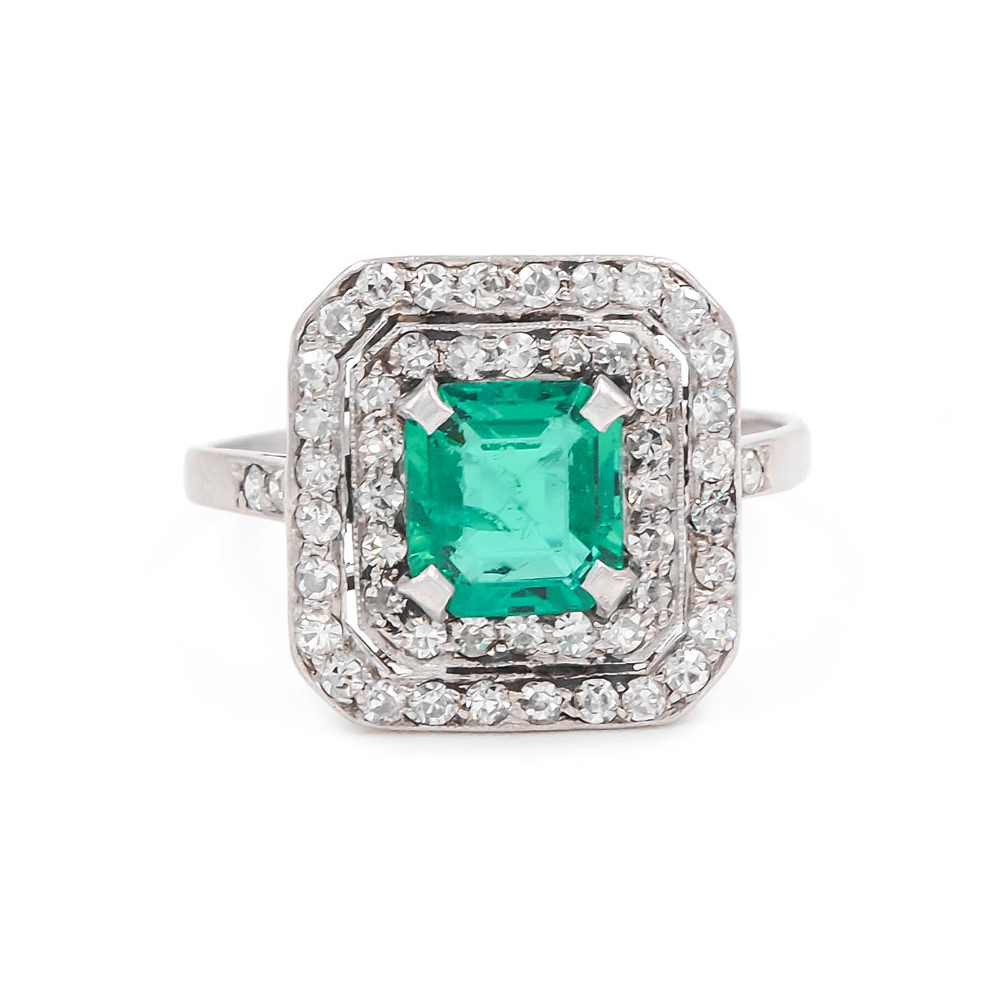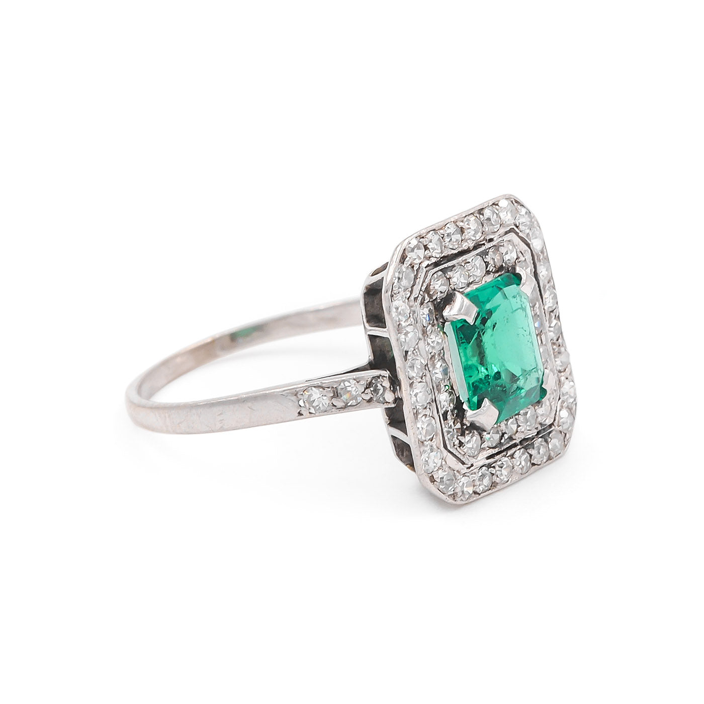 Art Deco 1.10 Ct. Emerald & Diamond Square Ring