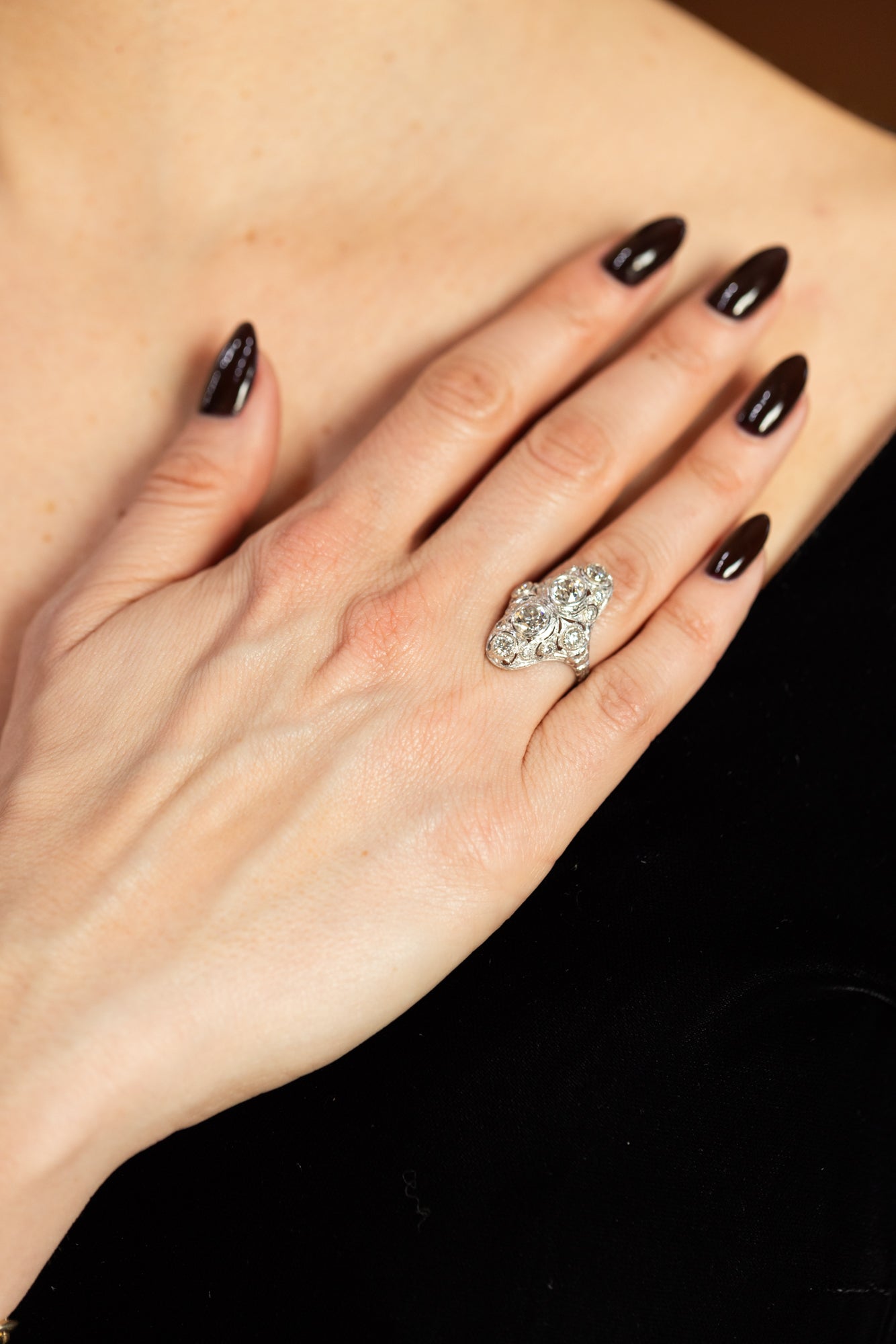 Art Deco 1.79 Ctw. Old European Cut Diamond Navette Dinner Ring