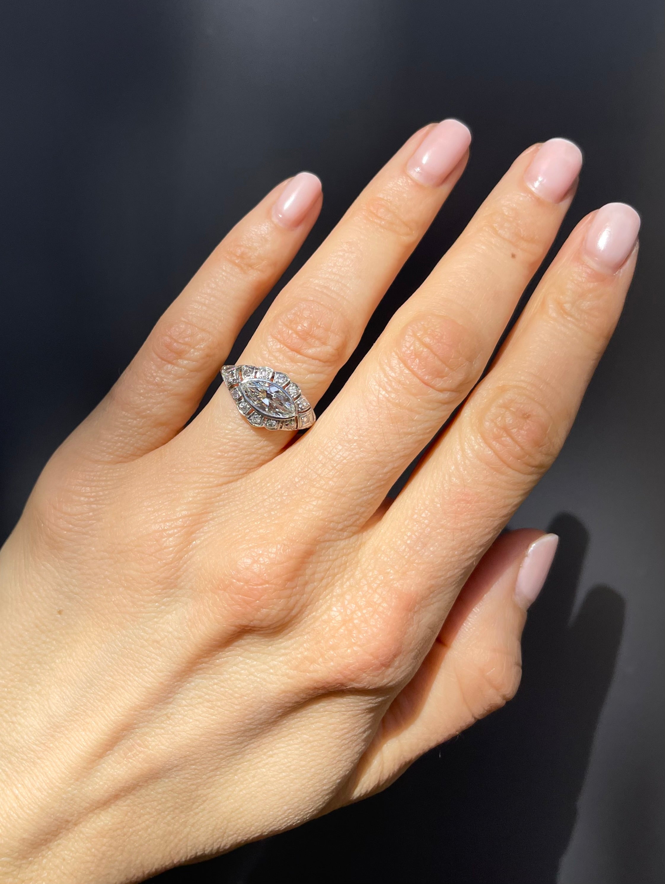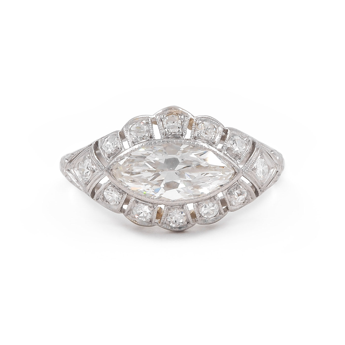 Art Deco 1.12 Ct. Marquise Cut Diamond Engagement Ring