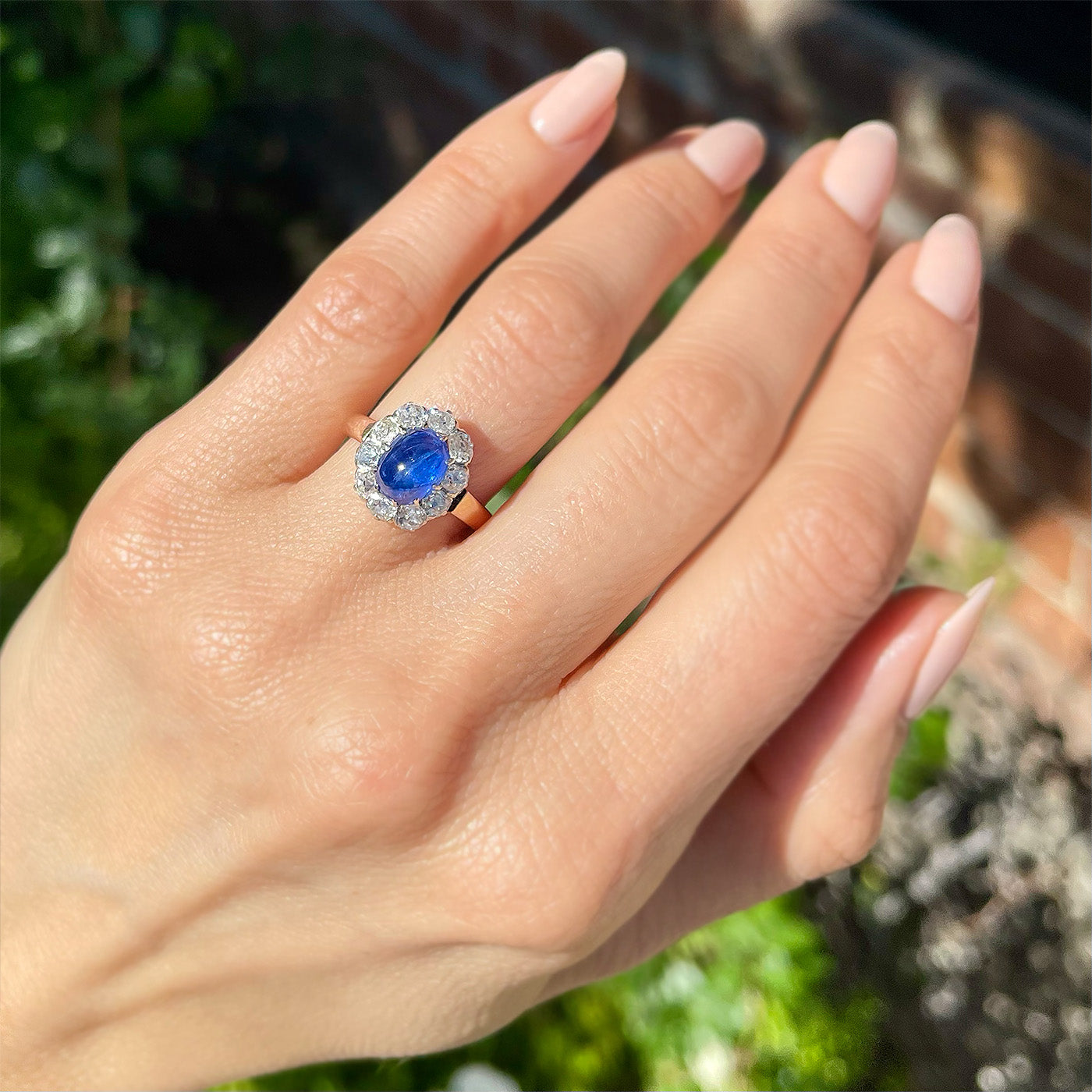Edwardian 2.40 Carat Sapphire & Old Mine Cut Diamond Cluster Ring