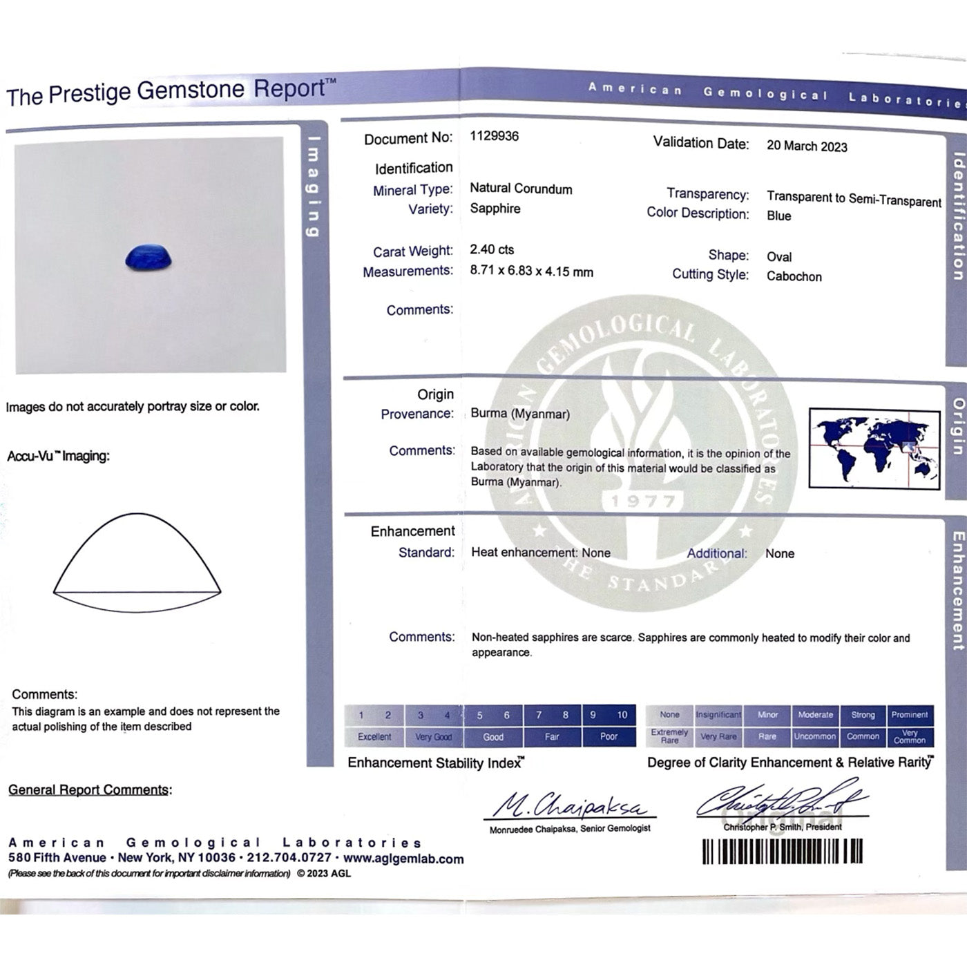 Certified: Sapphire is AGL Certified from Burma, Unheated (see photo)
