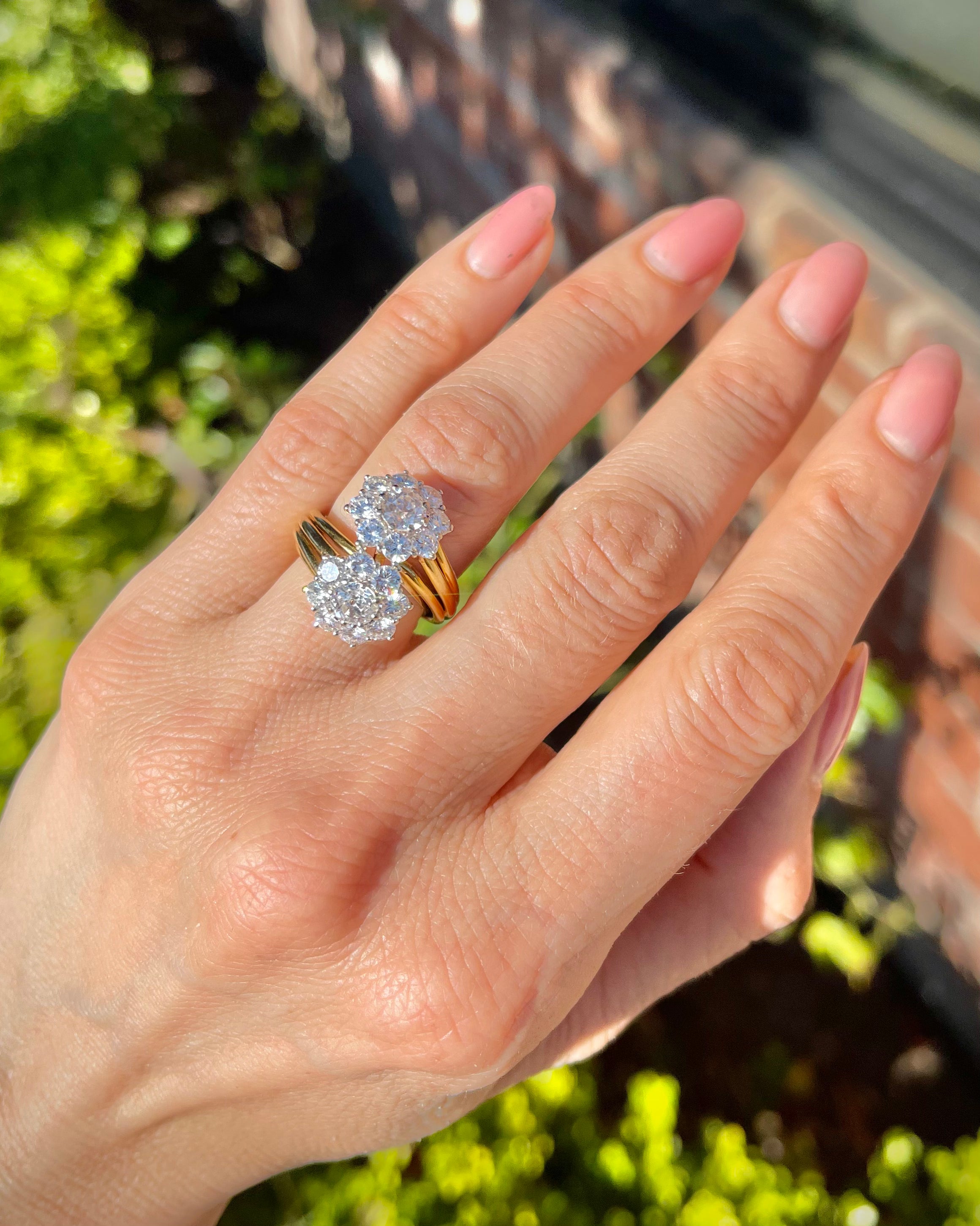 Mid-Century 1.00 Ctw. Old European Cut Diamond Cluster Toi et Moi Ring