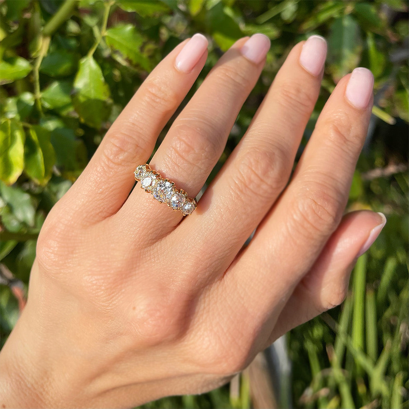 Victorian 0.88 Ct. Old Mine Cut Diamond 5-Stone Ring