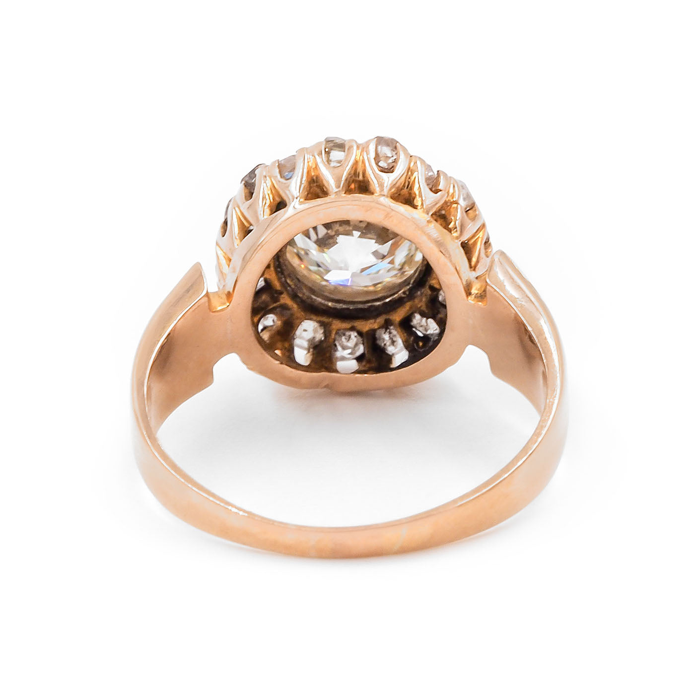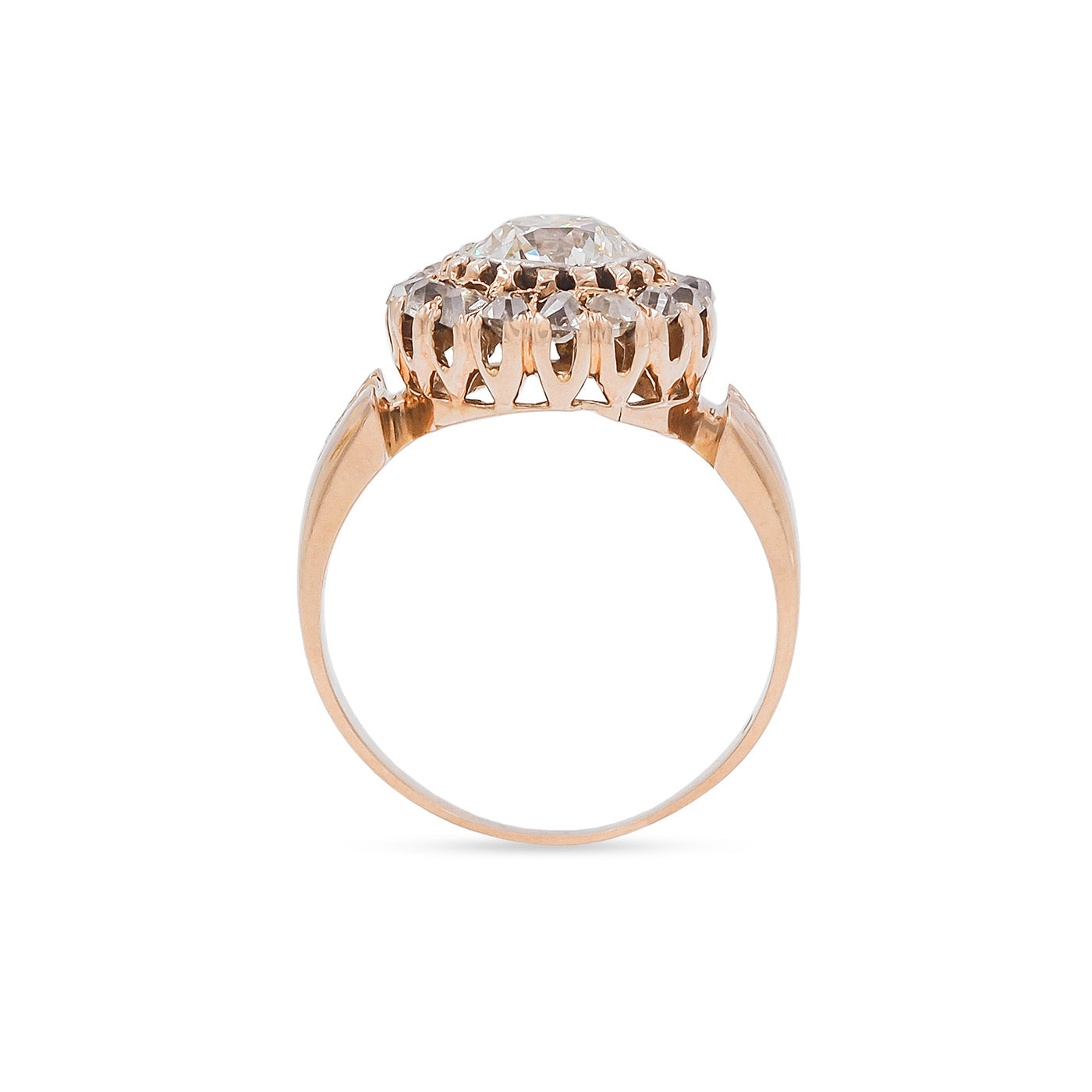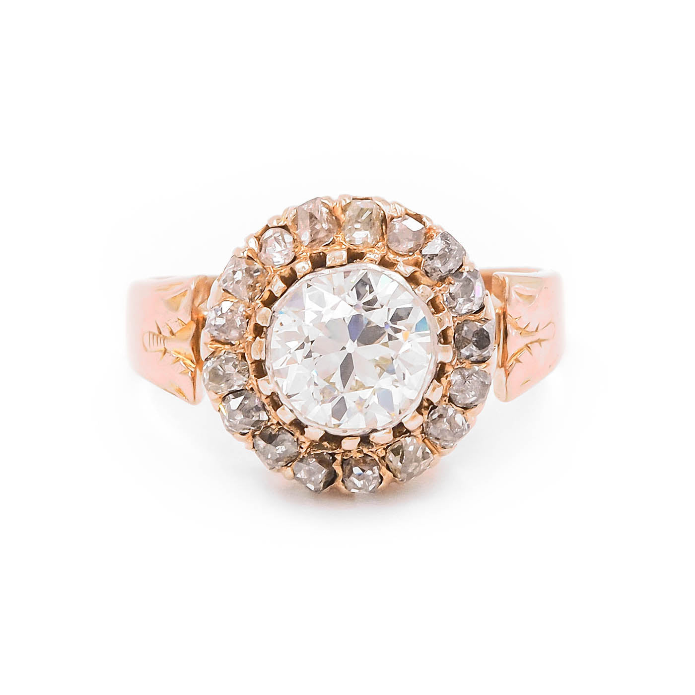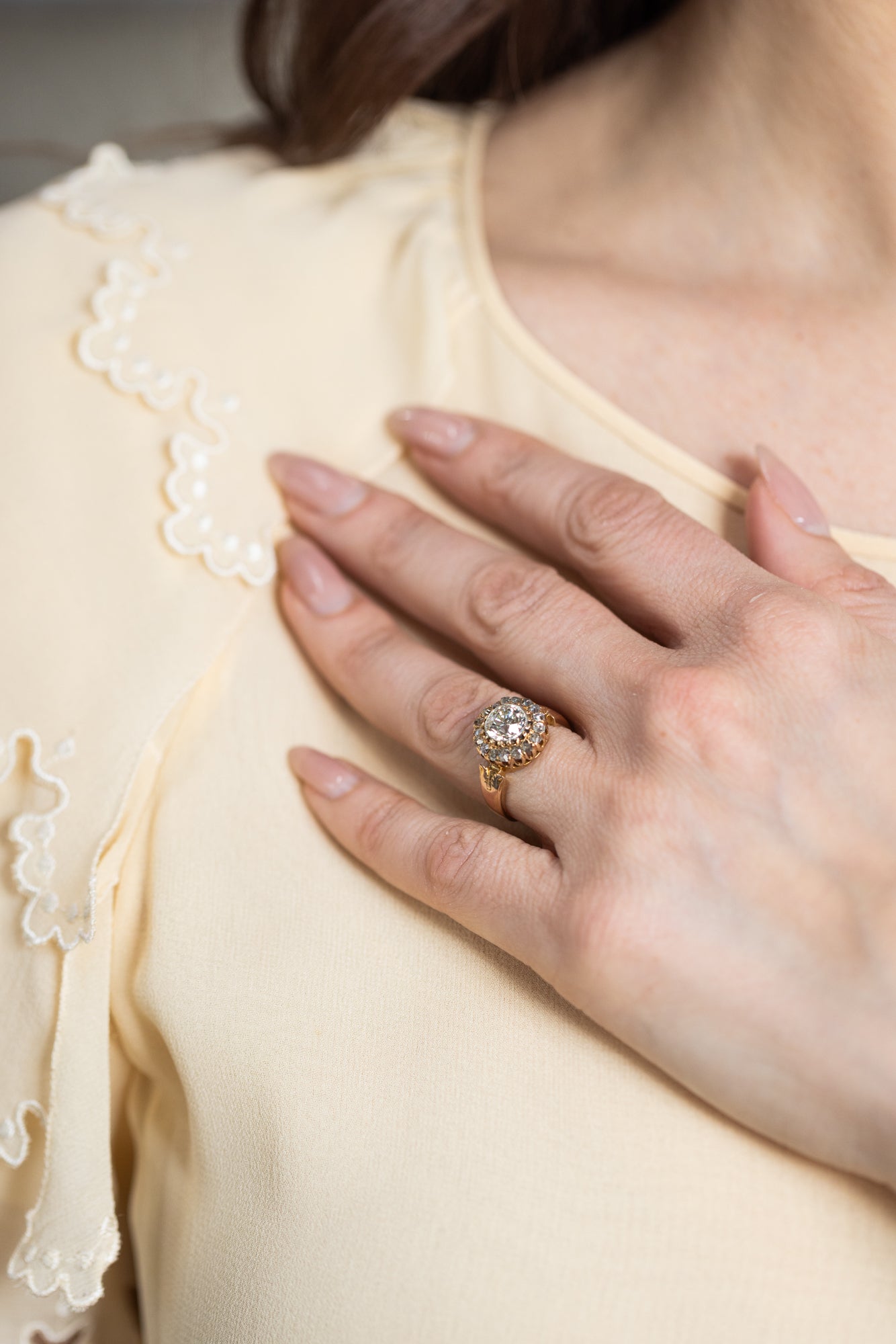 Victorian 1.43 Ct. Old European Cut Diamond Cluster Engagement Ring