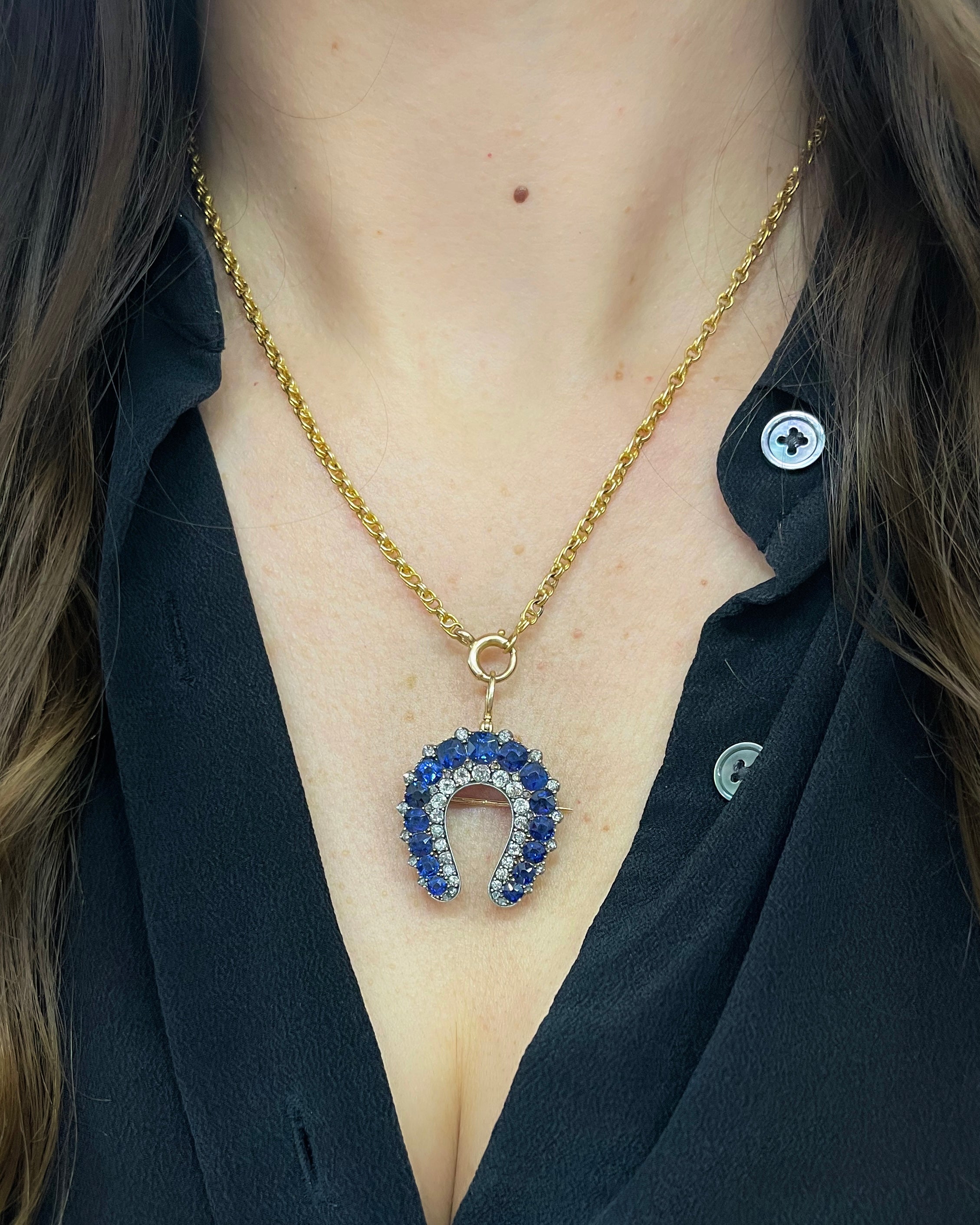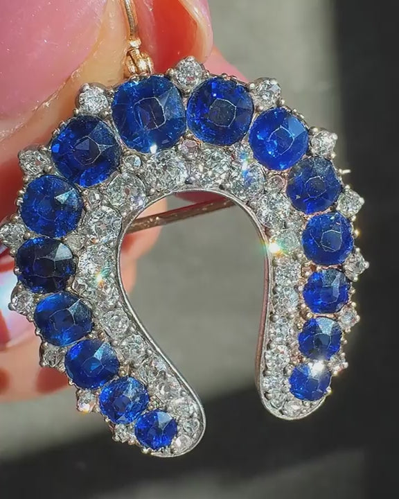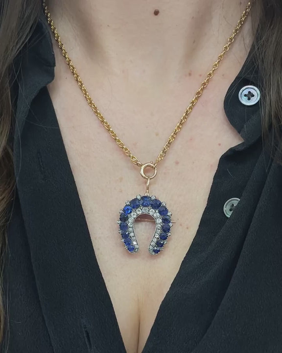 Victorian 7.25 Ctw. Sapphire & Diamond Horseshoe Pendant & Brooch by Cartier