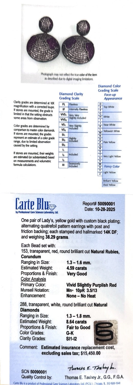 8.64 Ctw. Diamond & 4.59 Ctw. Ruby Quatrefoil Round Drop Earrings