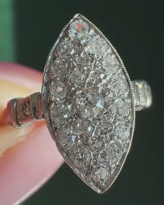 Art Deco 0.50 Ctw. Old European Cut Diamond Navette Ring