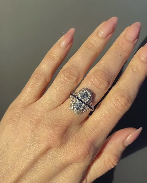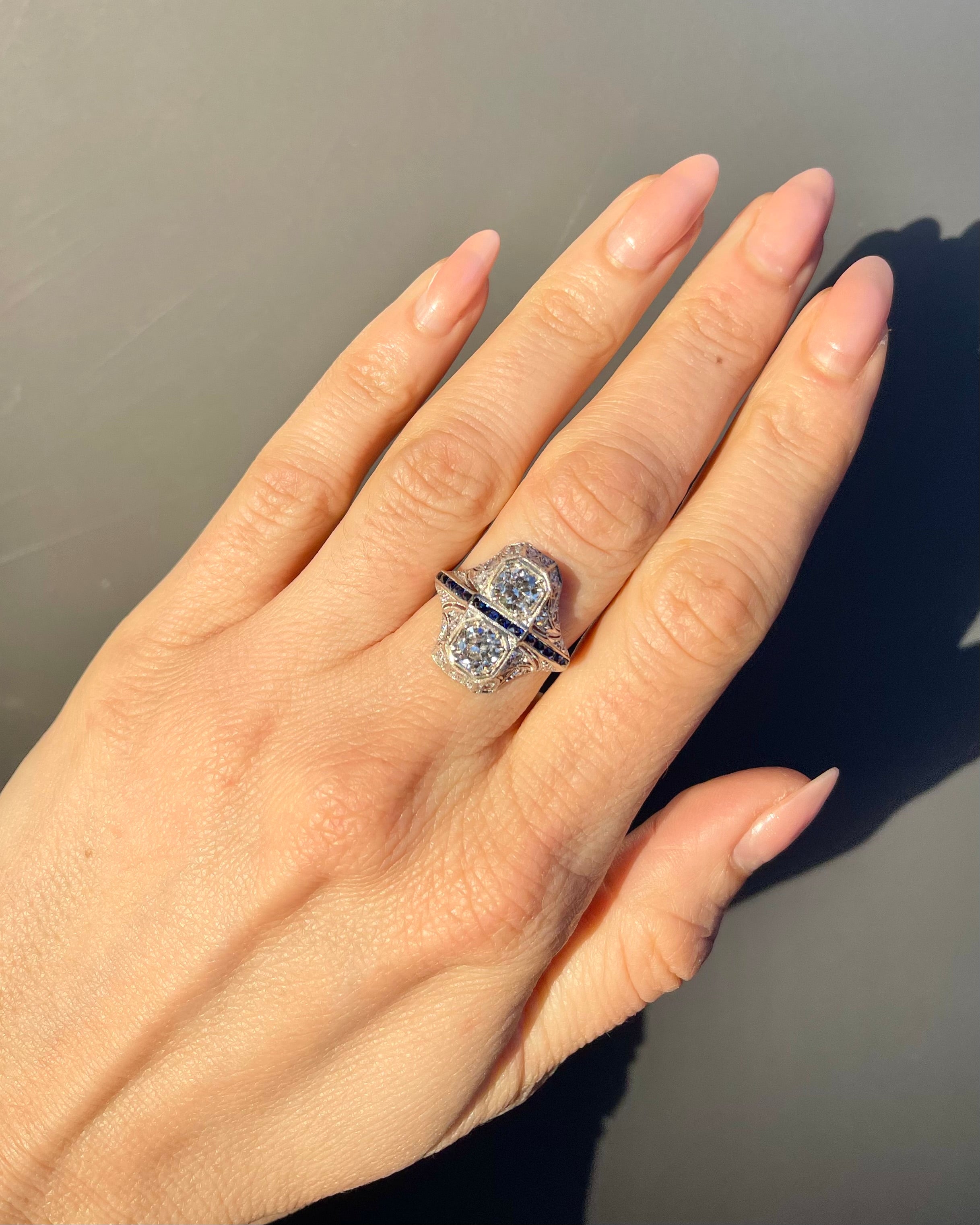 Art Deco 1.24 Ctw. Transitional Cut Diamond & Sapphire 2-Stone Ring