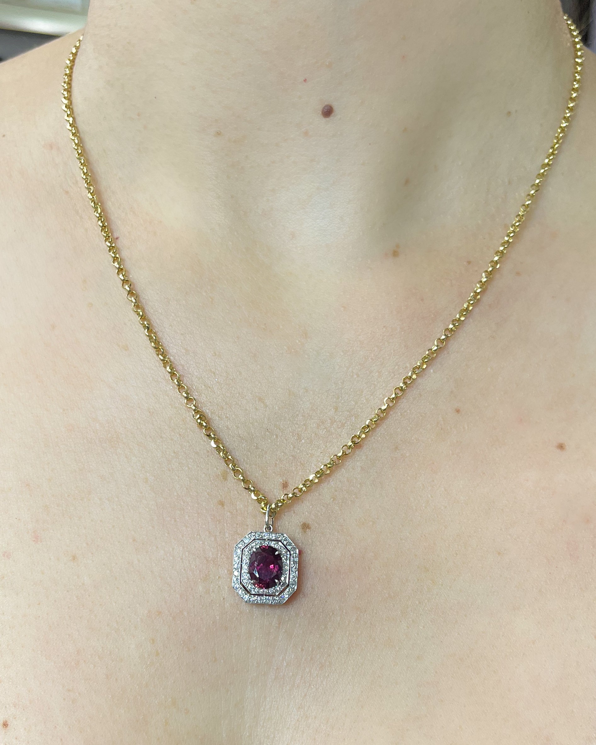 Edwardian 1.82 Ct. Oval Ruby & Diamond Octagonal Cluster Pendant Necklace
