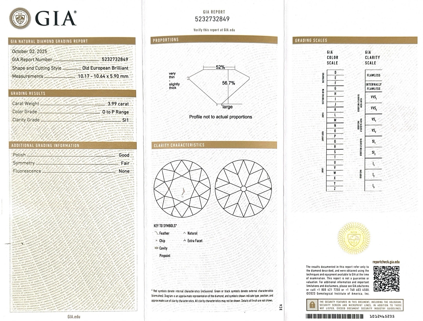 Edwardian 3.99 Ct. Old European Cut Diamond Solitaire Engagement Ring