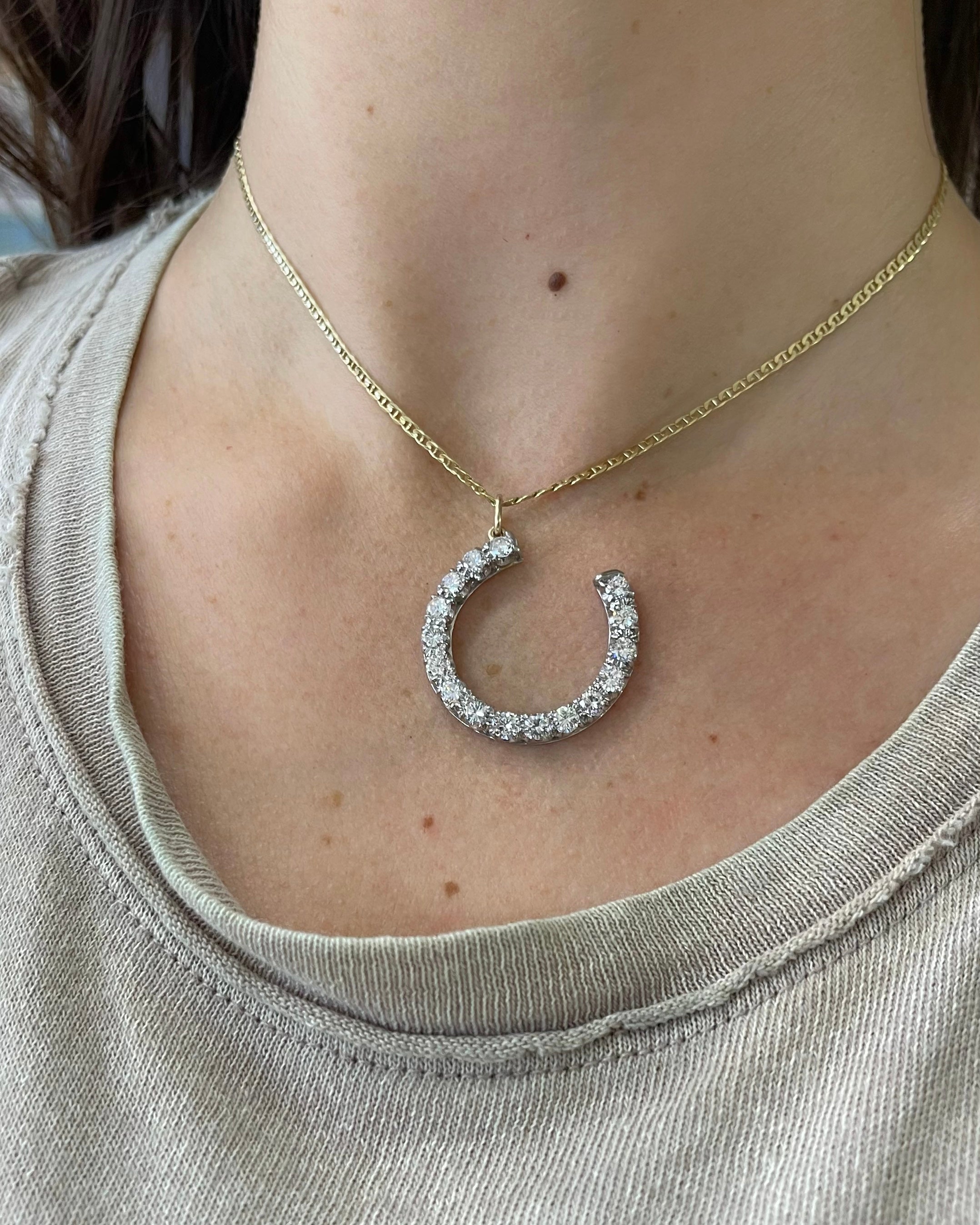 Mid-Century 3.20 Ctw. Diamond Horseshoe Pendant Necklace