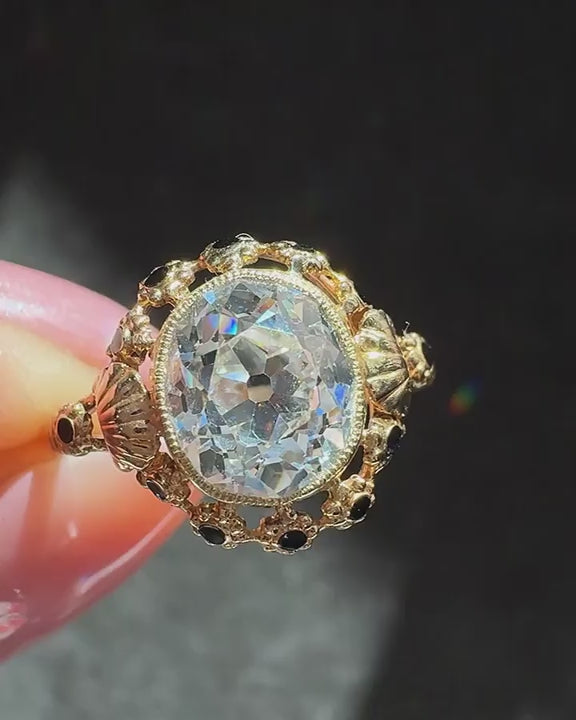 Victorian 2.30 Ct. Old Mine Cut Diamond & Black Enamel Engagement Ring