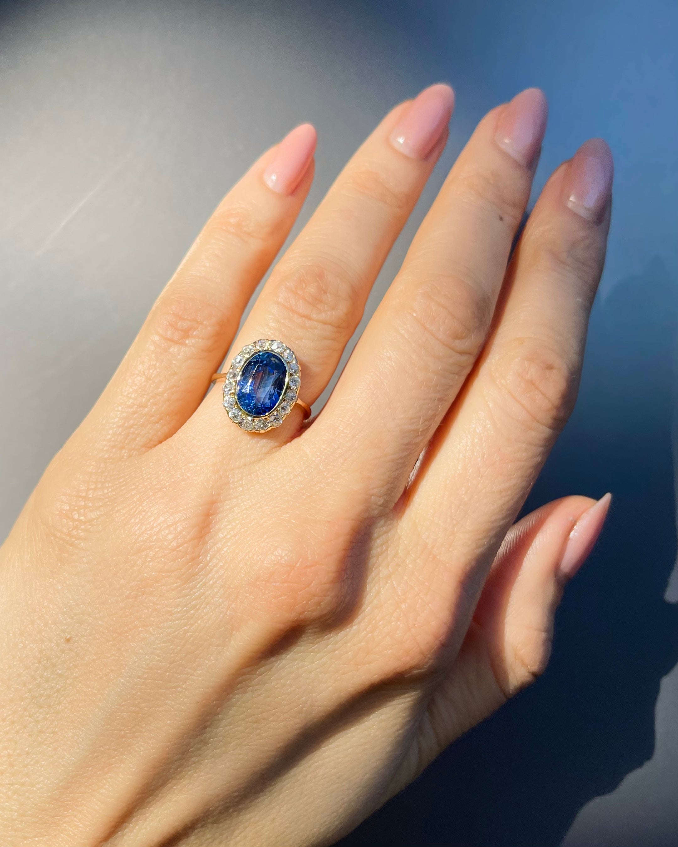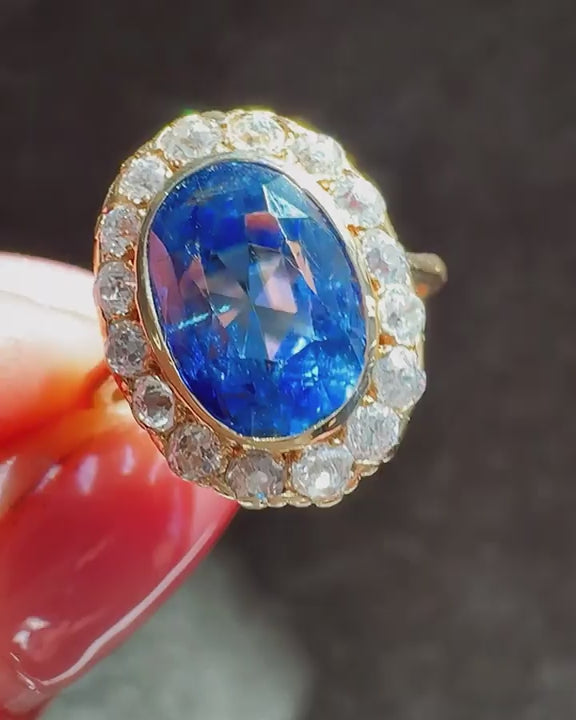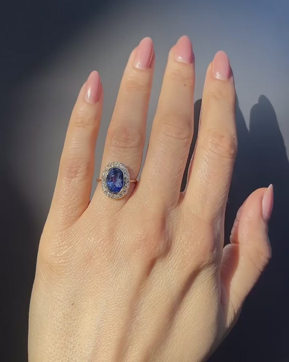 Victorian 4.39 Ct. Oval Sapphire & Diamond Cluster Engagement Ring