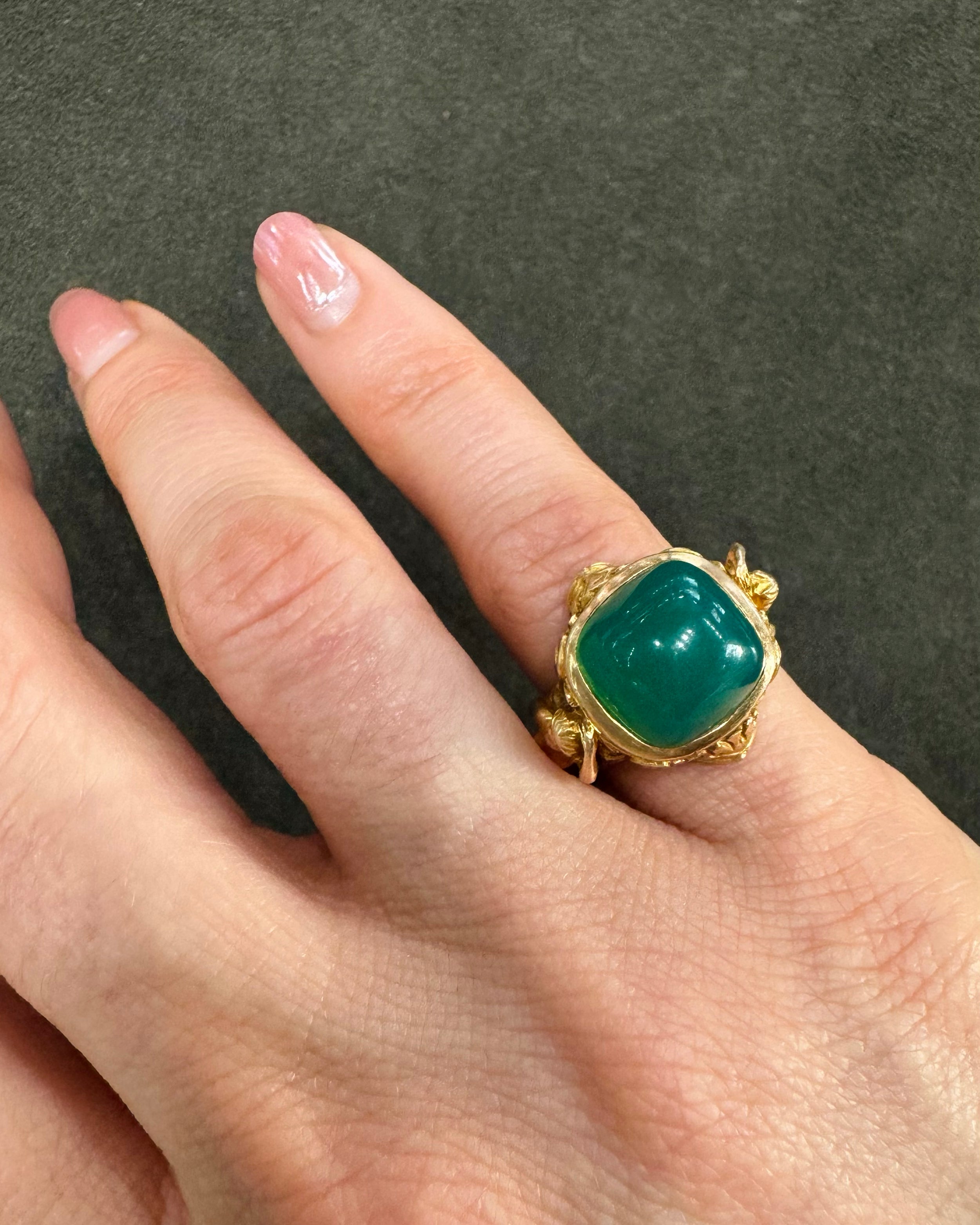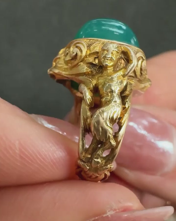 Victorian Chrysoprase 'Pan & Bacchante' Ring