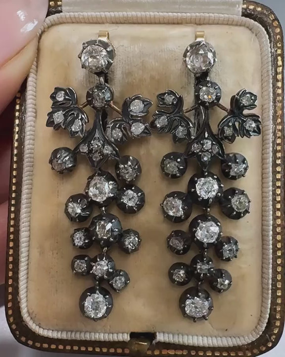 Victorian Old Mine Cut Diamond Grape Bunch Earrings